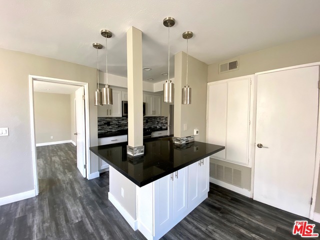 Beautiful remodeled one Bedroom and Bath with wood flooring and tile, a front unit with a patio! Updated kitchen with stainless steel appliances, stone counters, recessed lighting on dimmers throughout. Large walk-in frameless Shower,2 vanities, two closets in the master, the apartment has central AC and heat. Lots of light throughout the apartment. Washer/ Dryers in the community laundry room. Gated building with security cameras. One Car parking in the garage. pets may be considered. Only 9 units in the building. Walk to restaurants and shopping. Metro rail and bus stop close by.