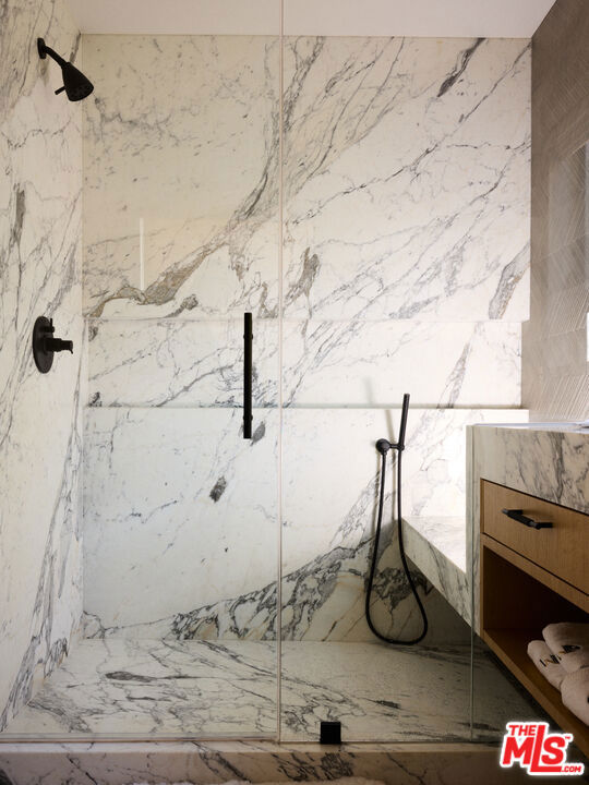 Tucked away in the exclusive Hollywood Hills, this private retreat seamlessly blends Old Hollywood glamour with modern luxury. Just minutes from the iconic Hollywood Sign, top studios, and world-class dining, it offers the perfect balance of seclusion and convenience. Designed with exquisite craftsmanship, the home showcases top-of-the-line finishes, including Brazilian woodwork, Italian marble, and bespoke wood cladding, plus a smart home system, creating an atmosphere of timeless sophistication. Expansive windows flood the space with natural light while framing breathtaking views. The main house features two bedrooms and 2.5 baths, while a detached bonus room serves as a versatile third space with its own bath, ideal for guests or a creative studio. Outside, the beautifully designed oasis invites effortless entertaining with a sparkling salt water heated pool, spa, fire pit, built in BBQ area, 2 car garage, all set against the backdrop of the serene Hollywood Hills. A true masterpiece, where classic elegance meets contemporary tranquility.