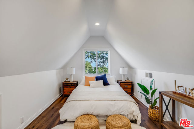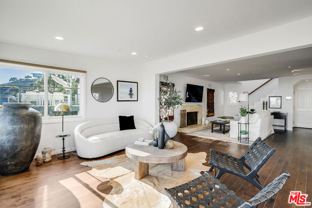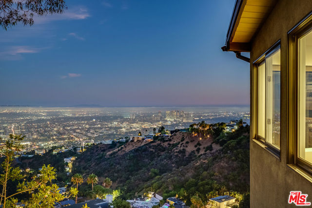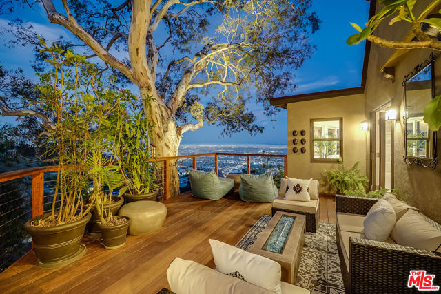 Nestled atop the iconic Appian Way in the prestigious Hollywood Hills West, this fully furnished, exquisitely renovated retreat offers an unmatched blend of luxury and history, complete with breathtaking panoramic views of Los Angeles. Once owned by John Densmore, drummer of the legendary band The Doors, this home sits at the heart of Laurel Canyon's rich musical legacy. Step through the front door and be captivated by uninterrupted 180-degree vistas, stretching from the glittering Downtown skyline to the serene expanse of the Pacific Ocean. During the day, watch crows and hawks glide gracefully at eye level, and as night falls, marvel at the city's transformation into a twinkling sea of lights. Perfect for entertaining, the outdoor viewing deck is beautifully illuminated, creating an inviting space to relax while enjoying the cool evening breeze. Inside, the home comes fully furnished and impeccably accessorized, featuring everything from an elegant dining set to custom cabinetry stocked with silverware, glassware, and cookware. The open-concept layout is enhanced by vaulted ceilings, newer hardwood floors, and custom-designed furniture that invites relaxation. Recessed lighting adds a warm, inviting ambiance, whether you're catching up on your favorite show or diving into a good book. And when you're ready to explore, the vibrant Sunset Strip and Sunset Plaza are just minutes away, offering world-class dining, upscale shopping, and a buzzing nightlife scene. This home isn't just a place to live it's a private sanctuary that captures the magic of Los Angeles from every angle.