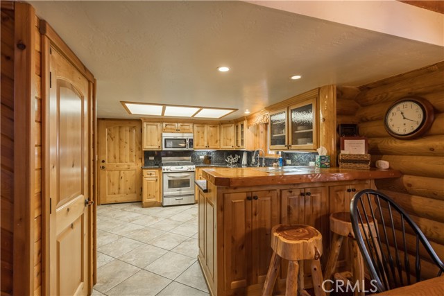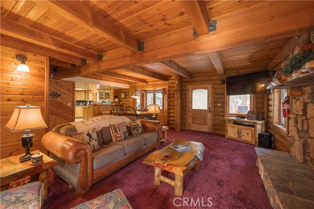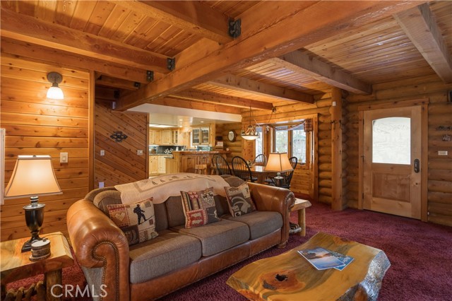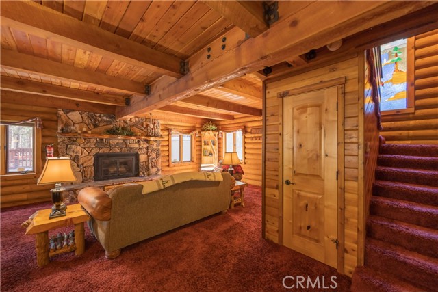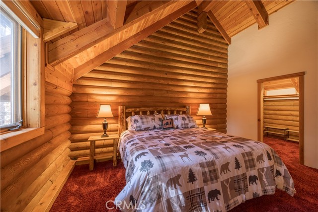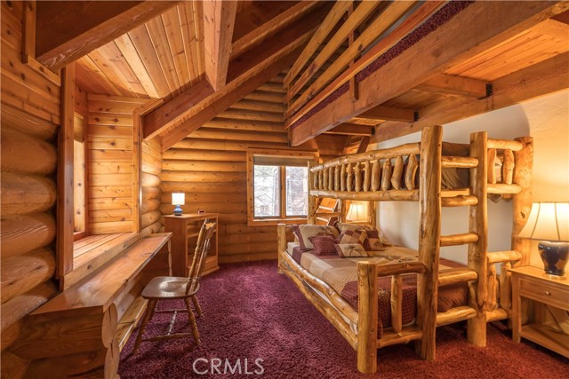If you ever dreamed of living in a real genuine log home in a Mountain Resort , near Ski Slopes in a terrific Mountain Community with year around attractions including a lake, this could be your rental for the next 12 months. Lower Moonridge location, attached garage, RV Parking, landscaped front and rear yards with a lighted horse shoe pits, outdoor speakers, extra large rear deck, covered front porch. Interior amenities include granite kitchen counters, stainless appliances, walk-in pantry, formal dining area, washer /dryer, plus 2 of the upstairs bedrooms have extra sleeping lofts. In addition to being a super short jaunt to the Bear Mountain Ski Shuttle, this property is convenient to the golf course, the 'new Zoo' and very close to lake access. level parking and only 2 steps up the front porch. Beautiful updated furnishings. This will be an amazing home to live in, don't miss out.