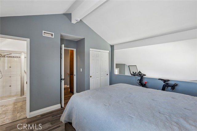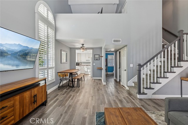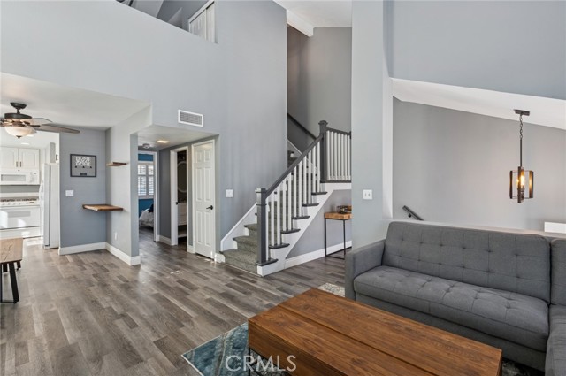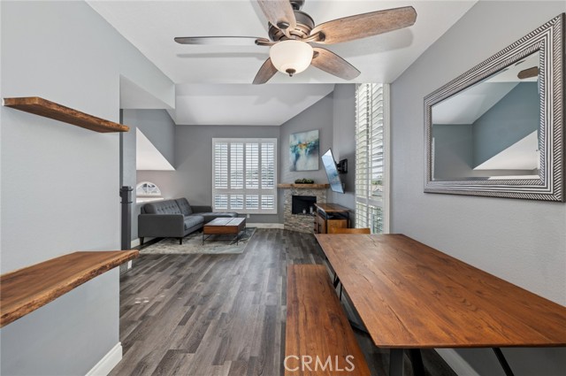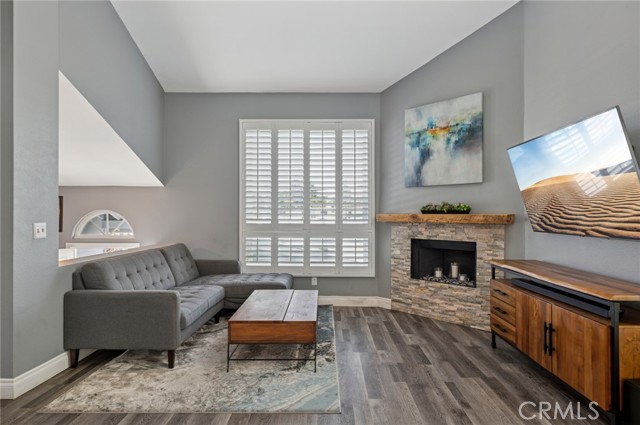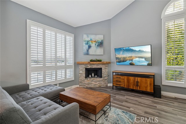 Live in the heart of Costa Mesa with this stylish 2-bedroom, 2-bath home that perfectly balances comfort and functionality. The open-concept living area flows seamlessly from the kitchen to the living room, centered around a decorative fireplace, making it ideal for relaxing or entertaining. Vaulted ceilings, vinyl plank flooring, and plantation shutters add modern flair and privacy. The main level features a full bedroom and bathroom—perfect for guests or a home office. Upstairs, the loft-style primary suite offers an en-suite bathroom and abundant storage, creating a serene private retreat. Enjoy the convenience of an attached 2-car garage with epoxy flooring, extra storage, and a washer/dryer setup. Central A/C ensures year-round comfort. Located close to Mercado Market, trendy eateries, and just minutes from Fashion Island and South Coast Plaza, this home puts shopping, dining, and entertainment right at your doorstep. Not to mention, everything Costa Mesa has to offer is just a short drive away!