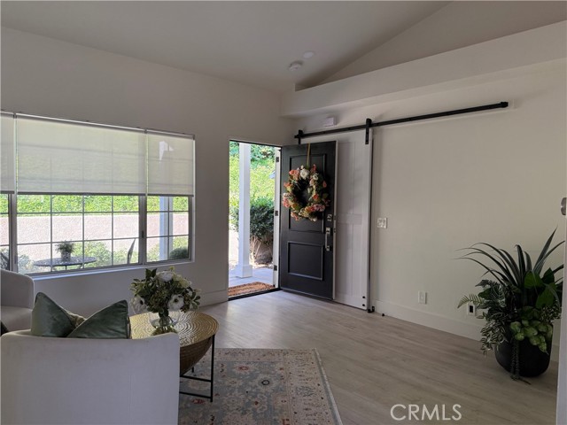 Discover the perfect blend of comfort, style, and effortless living in this charming carriage-unit condo, tucked inside the highly sought-after gated community of Canyon Villas. As you head up a single flight of stairs, you’re greeted by a private, serene patio—your own peaceful retreat before stepping inside. Bright, airy, and beautifully refreshed, the open-concept living space is flooded with natural light, setting the tone for a warm and welcoming ambiance. The updated kitchen shines with stainless steel appliances, granite countertops, a farmhouse sink, and seamless connection to the living room—ideal for both everyday living and easy entertaining. Behind a chic sliding barn door awaits the spacious bedroom, complete with an ensuite bath and a generous walk-in closet. Thoughtful upgrades elevate the entire home, including luxury vinyl flooring, recessed lighting, modern hardware, updated doors, and stunning beamed ceilings that add character and charm. Enjoy the convenience of A/C, your own private laundry room with full-size washer and dryer (located just off the patio), and a 1-car garage offering additional storage. Canyon Villas delivers resort-style amenities, featuring two sparkling pools, relaxing spas, a fitness center, and a clubhouse perfect for gatherings. And with the 73 freeway, scenic parks and trails, and the vibrant Aliso Viejo Town Center—with shops, dining, and a movie theater—just minutes away, this location truly has it all. Welcome to a home where every detail is designed for easy, elevated living.