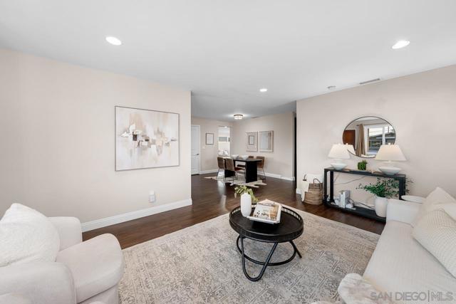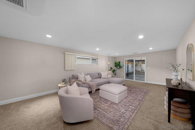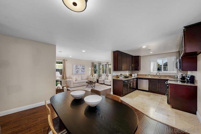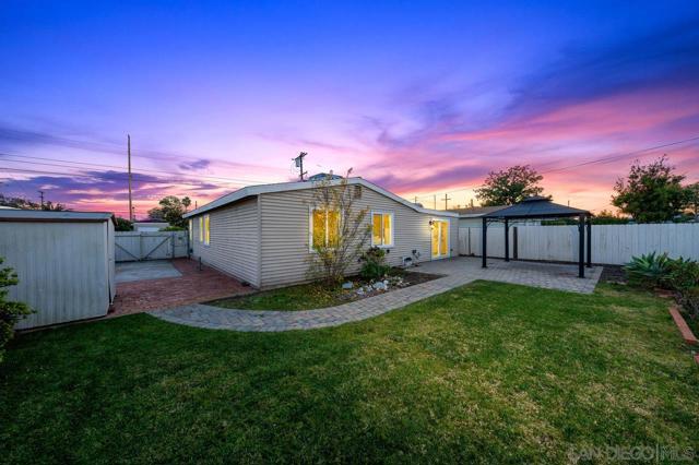Nicely updated three-bedroom, two-bath single-story home in Clairemont awaits. Tasteful upgrades in the living area include dark wood-like, wide-plank laminate flooring, custom baseboards, and creamy hued walls and with plenty of ambient light. Kitchen has gleaming granite counter tops, plenty of cabinets, and adjacent dining area. Large family room has slider to the backyard, and has plenty of room for a pool table, Skee-ball, or you name it. Backyard has beautiful brick patio and walkway with space for a pool, hot tub, or home garden, and with an included shed. Front yard is drought friendly. Potential space for an RV included.