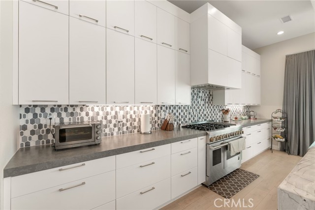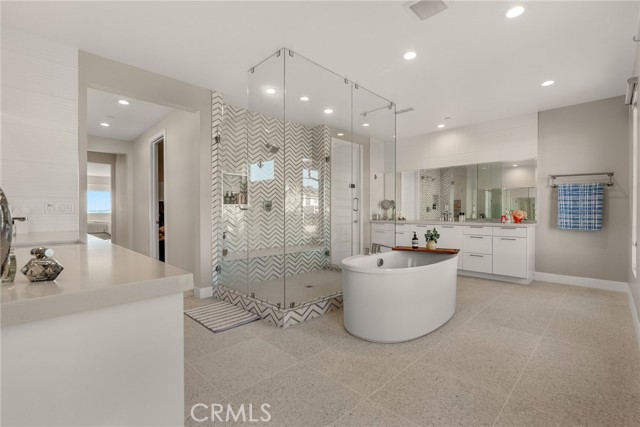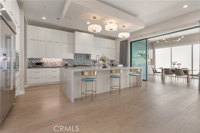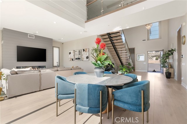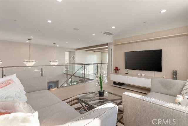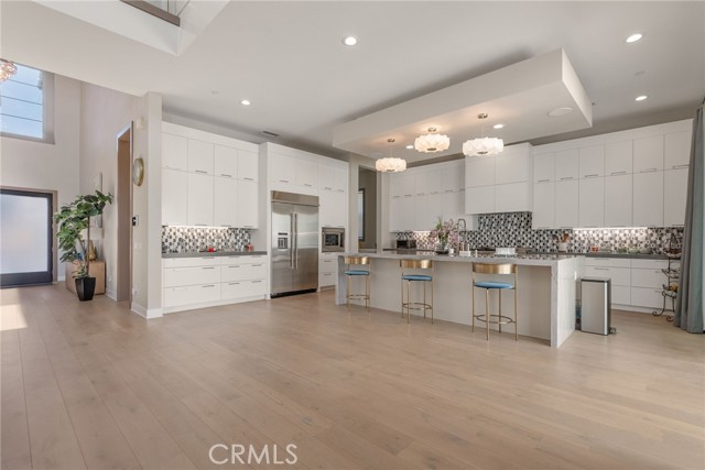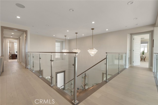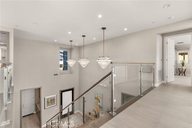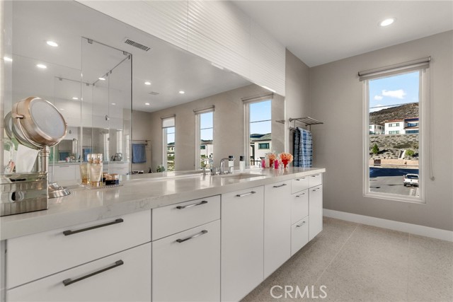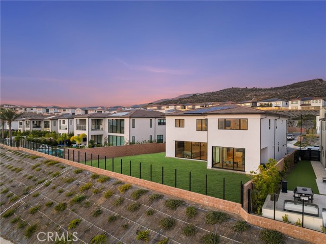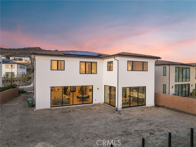 Luxury Living in Guard-Gated Westcliffe. Welcome to this move-in-ready luxury residence located in the prestigious guard-gated Westcliffe community. Offering approximately 5,000 sq. ft. of sophisticated living space, this 5-bedroom, 5.5-bath home is filled with top-tier upgrades and thoughtful design elements throughout.A striking floating staircase sets the tone upon entry, complemented by expansive 20' x 9' sliding doors on the first floor that create seamless indoor-outdoor flow. The oversized primary suite provides a true retreat, enhanced by its generous layout and elevated finishes. An enclosed California room expands the living footprint even further, featuring a custom-designed bar area tailored specifically for the space—perfect for entertaining and year-round enjoyment.Every detail has been meticulously upgraded: premium flooring, a designer kitchen, and spa-quality bathrooms. The home is fully prewired with built-in speakers and connected to a Sonos system for whole-home audio. Custom Shade Store blinds and curtains, including automated window treatments, pair beautifully with custom chandeliers and refined moldings throughout. Organization is elevated with fully customized cabinetry by California Closets and Inspired Closets, extending to the upstairs media room. Located on a wide, quiet street, the property showcases gorgeous panoramic city and canyon views, offering a stunning backdrop for both everyday living and entertaining. A rare opportunity to own a highly upgraded, turnkey home in one of the area’s most sought-after gated communities.