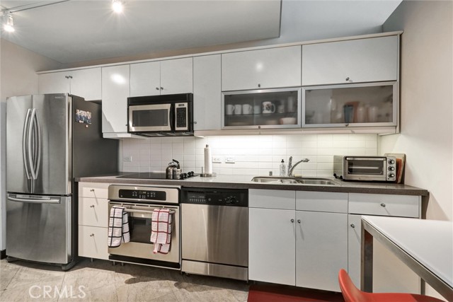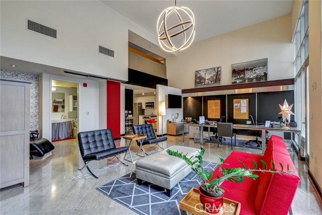 Rare live/work loft on street level in ideal Little Italy. Enjoy the availability of dining, strolling and all that the neighborhood offers. Soaring ceilings on entry level with a bedroom loft. Downstairs has a full kitchen, laundry closet with stackable appliance, full bath and large living area. Truly perfect space for certain professionals to live and work without the daily commute! over 1200 sqft with high ceilings offers a remarkable spacious environment. Some furniture is available for use, too. Forced air and heating. Enter from the inside lobby area or from the street from the gated patio. Two assigned parking spaces in gated parking garage with openers. Elevators are available from garage to level 0ne.