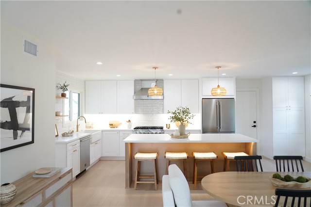 Discover this beautifully reimagined modern coastal farmhouse, fully renovated from top to bottom and essentially a brand-new home inside and out. Offering 3 bedrooms and 2 bathrooms, and located on an oversized corner lot with 12' RV gate this thoughtfully redesigned residence blends contemporary comfort with timeless coastal charm. As you arrive, the fresh curb appeal immediately stands out—new sod, newly installed irrigation system, and clean modern hardscape create a warm welcome. Step inside to an inviting open-concept living and kitchen area, where natural light fills the space and highlights the home’s seamless flow. The brand-new kitchen features Forno appliances, an oversized 9' island with built-in wine fridge and microwave, custom cabinetry, and stylish finishes—making it the perfect centerpiece for everyday living and effortless entertaining. Every major system and surface has been upgraded, including a new dutch front door, new roof & fascia, new windows, upgraded plumbing, new 200-amp electrical panel, new LED lighting throughout, new LVP flooring, and EV-charging–ready wiring. Additional improvements include a new water heater, new furnace, and refreshed interior and exterior finishes for long-term efficiency and peace of mind. The primary suite offers a relaxing retreat with a customized walk-in closet and a thoughtfully redesigned bathroom with dual vanity sinks. Two additional bedrooms provide flexibility for family, guests, or a home office. The finished garage is a standout feature, complete with a brand-new garage door and motor, ideal for storage, parking, or a workshop setup. With every detail carefully curated and every major upgrade complete, this home delivers a true turnkey living experience—a rare opportunity to move into a fully modernized property in a desirable coastal community. This home is beach close while also providing easy access to the freeway, offering a perfect mix of convenience and proximity to the ocean. In addition, the home is located close to a highly regarded Montessori school, well regarded public schools, Golden West College, diverse restaurants and retail, as well as the popular Bella Terra shopping and entertainment center. It’s an exceptional location that combines comfort, convenience, and coastal living.