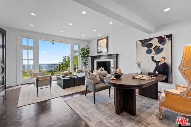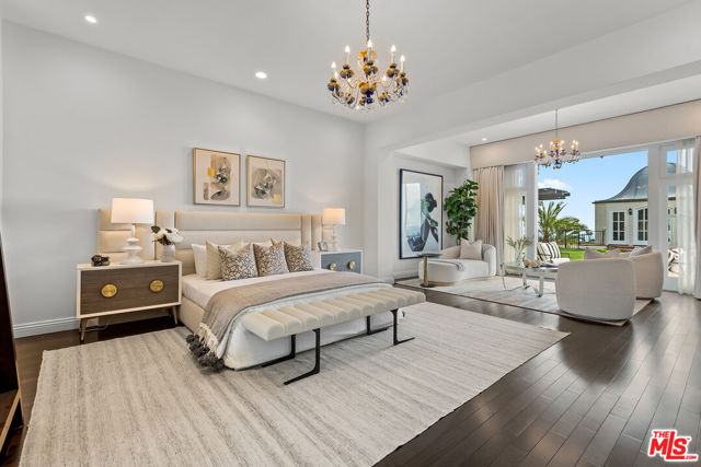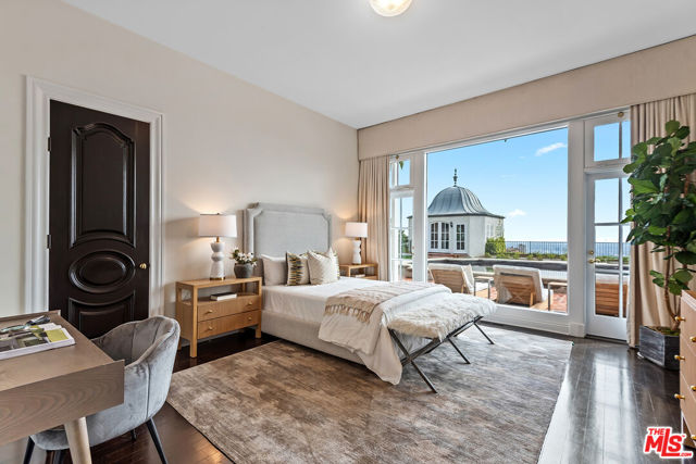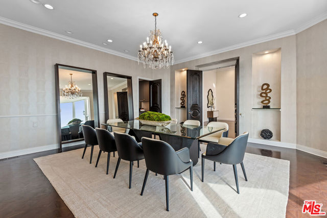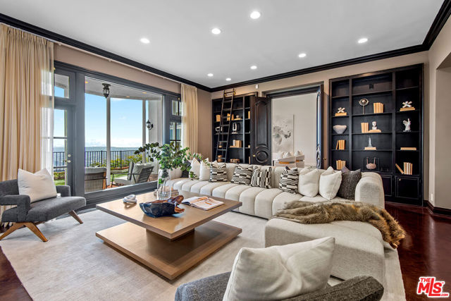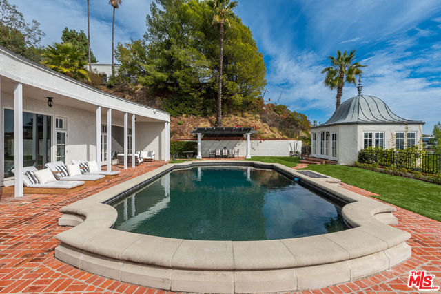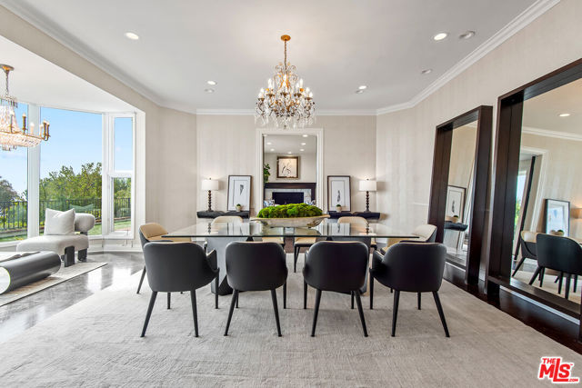 Once in a generation opportunity to live in Trousdale's prestigious Billionaires Row, considered to be one of the finest locations in Beverly Hills. Grand Traditional home set behind gates with inviting floor plan perched on nearly half an acre overlooking jetliner views from Downtown to the ocean. Dramatic soaring ceilings and spectacular views from formal living room, large dining room and family room with wood paneled bookcase and full bar for entertaining. Gourmet kitchen with center island, butler's pantry, breakfast nook and top-of-the-line appliances. Primary bedroom with floor-to-ceiling windows, sitting area, separate spa like bathrooms, walk-in closets and sauna. Three additional en suite bedrooms in the main wing along with gym, massage room and optional bedroom. Expansive back yard with patio, outdoor dining areas, large pool and detached cabana with bathroom. Private office, full laundry room and separate wing for family and/or staff. 3-car garage with generous motor court. Call for furnished pricing