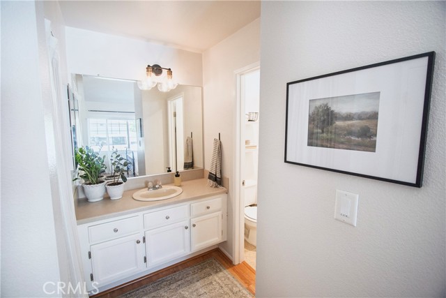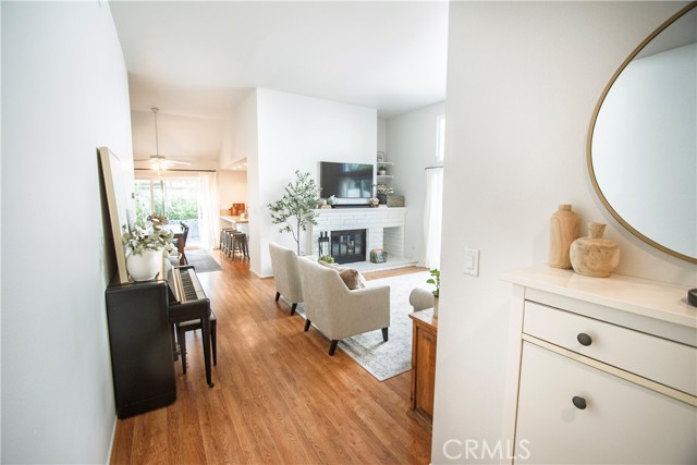 Located on a quiet cul-de-sac in The Bungalows, this updated Valencia home offers warmth, charm, and an exceptionally functional layout. With two bedrooms downstairs and a spacious loft upstairs that has been converted into a third bedroom, the home provides a surprising amount of flexibility for guests, work, or additional living space. Natural light fills the living room, where vaulted ceilings create an airy feel and a cozy fireplace anchors the space. The dining area sits just off the beautifully refreshed kitchen, which features stylish finishes, a barn door, and a layout that makes both everyday cooking and entertaining feel effortless. The primary bedroom includes its own en-suite bathroom, while the second downstairs bedroom also enjoys a private bath—ideal for comfort and privacy. Throughout the home, thoughtful upgrades add to the sense of ease and move-in readiness. The backyard is perfectly sized for gatherings, complete with a fire pit and an additional side yard that expands the outdoor possibilities without overwhelming maintenance. Centrally located in the heart of Valencia, the home offers quick access to the community’s well-known paseos, nearby shopping, dining, and everything that makes this area so desirable. Available January 1, this home is beautifully updated, wonderfully situated, and ready to welcome its next chapter.