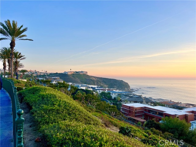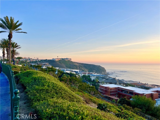 Located in beautiful Dana Point's Niguel Beach Terrace, on the ocean-side of PCH, right across from world class Strands Beach is this coastal inspired sought after upper level corner unit with vaulted ceilings set next to a tree covered greenbelt park. Gracious open layout floor-plan with wood-like hard surface flooring throughout. Tall sliding glass doors open to a delightful private balcony both from the living room as well as the bedroom to enjoy the pleasant indoor/outdoor lifestyle. Kitchen has sunny window with greenbelt view behind the sink to view out while preparing meals and washing up. Kitchen is equipped with a 4 burner electric cooktop, vented hood, oven, dishwasher, refrigerator, and breakfast bar. Dining area has a breezy beachy themed ceiling fan lighting fixture. Double doors lead into the private bedroom with vaulted ceiling, 2 closets, and bathroom with vanity lighting and tub shower combination. Additional storage in coat closet near entryway and in-unit laundry closet on balcony. 1 parking spot is assigned and guest parking is first come. EV charging stations onsite. Niguel Beach Terrace provides 2 spa's, a pool, and clubhouse. Walk across the street to view fantastic sunsets with friends and neighbors, bring your coffee cup to gaze at the Pacific in the morning, go down the stairs to have a run on the sand or enjoy relaxing beach days. Walking distance to chic restaurants and shopping in the Lantern District, historic Headlands Preserve Trail, Dana Point Harbor, Monarch Beach Golf Links, Waldorf Astoria Resort, Ritz Carlton Laguna Niguel, and easy access to commuting via freeway, rail, and air. Interior photos to come.