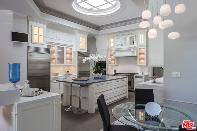 Single story 5 bedroom 5 bathroom home on one of the largest lots on Westgate Ave in the heart of Brentwood. This home has a great open floor plane with wonderful Indoor - outdoor flow. The formal entry flows seamlessly into the living areas and immediately exposes the yard and pool. The incredible kitchen has stainless steel appliances, a center island, a bar counter and an eat-in area. The home features wood floors, Recessed 14 ft high ceilings with cove lighting, paneled Walls an abundance of Large windows and smart home automation. The extensive use of skylights throughout the home infuses it with natural light and provides for an airy relaxed interior while accordion doors give way to an expansive back yard with outdoor kitchen, fire-pit and Infinity edge pool.