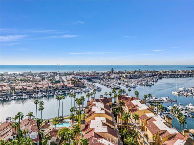 SLIP TO ACCOMMODATE UP TO 60 FOOT VESSEL INCLUDED! Experience waterfront living in the prestigious community of Portofino Cove in Huntington Harbour. This spacious 2BR/2BTH home with panoramic harbor views includes exclusive use of a slip on the deep water main channel that can accommodate a boat up to 60 feet. The unique dock configuration allows for an additional side tie for your tender. Your new primary bedroom includes a walk-in closet and en-suite plus fabulous water views and ocean breezes from the balcony. Located at the front of the home, the 2nd bedroom is perfect for guests or office space and is served by the hall bathroom. The kitchen is open to the large living/dining room and has an adjacent dining nook. Both balconies overlook resort-style living with association amenities including a pool, spa, sauna, and an outdoor kitchen overlooking the main channel. You'll have front-row seating from your balcony for the annual Huntington Harbor Boat Parade. Seabridge Park and Mother's Beach is just outside the gates and offers a large grassy area for picnicking, a beach with calm waters, kayak launching, and loads of playground equipment. Secured garage with two spaces (not tandem as with many other units) and easy elevator access.