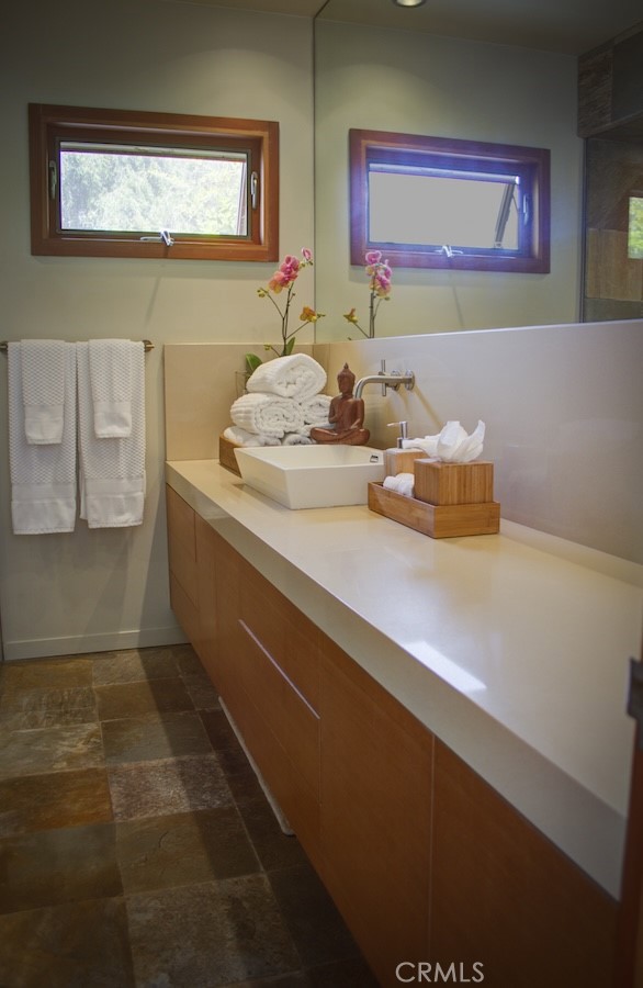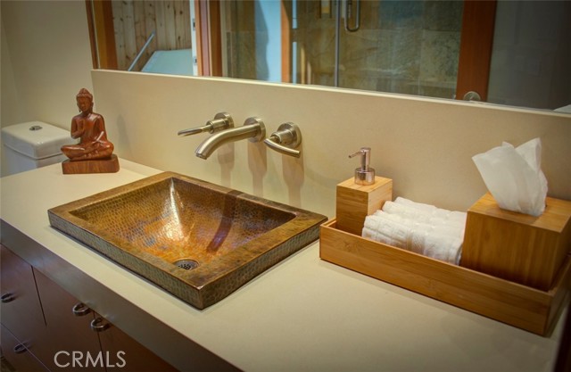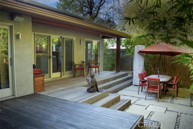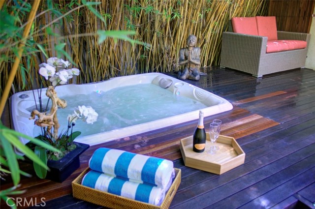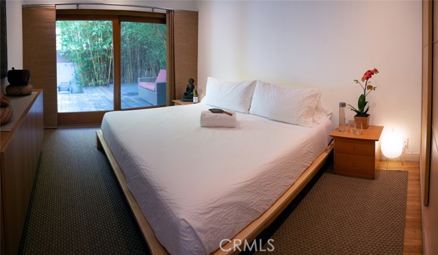 Exceptional Japanese Modern home offering serene indoor outdoor living in the heart of Venice Beach. This sun filled, solar powered residence sits on a private walled lot creating a peaceful sanctuary while minutes from world class shopping, dining, and beach access. An entertainer's paradise. Interior features include newly installed central heat and AC with advanced air filtration system, a spacious gourmet kitchen with modern appliances and wine refrigerator, a dedicated media or screening room with reclining Natuzzi seating (this is the 3rd bedroom but could be converted to sleeping bedroom), smart home technology with streaming capable TVs throughout, a master suite with Duxiana mattress and spa inspired design, and a deep soaking tub for ultimate relaxation. Outdoor living highlights include an expansive mangaris wood deck with multiple entertainment zones, a private hot tub with ozone sanitation system, a built in gas BBQ grill and fire pit area, teak dining furniture with shade umbrella, tranquil water features and Japanese inspired landscaping, and a meditation garden with zero gravity relaxation seating. Location benefits include an easy bike ride to Venice Beach, Abbot Kinney Boulevard, and Whole Foods, a prime Venice location that combines privacy with walkability, and high speed internet included. Additional notes: fully furnished and turnkey ready, previously operated as a successful short term rental with all amenities and supplies included.