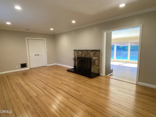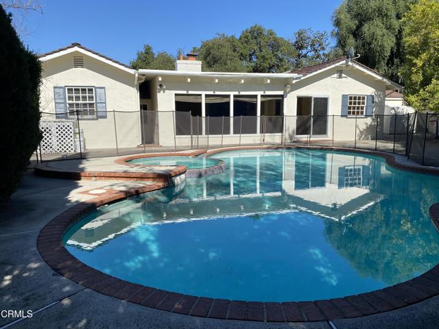 Conveniently located near Carver Elementary School and San Marino High School, this beautifully maintained and upgraded property is on a quiet tree-lined street near shops and restaurants. The front covered porch and ahandsome barn door lead one to an immaculate home with gleaming wood floor and recessed lighting throughout. The living room has peg & groove wood floor and a dual sided fireplace which serves both the living andfamily rooms. The bright family room has wood-like luxury vinyl plank flooring, built-in book cases and a panel of glass windows. With views of the sparkling fenced pool, this is the perfect place to relax and enjoy So Cal living. Beyond the family room is the dining area with asliding glass door to the back yard. Next to the dining area is the open kitchen with granite counter tops, loads of cabinets, skylight and access to the attached garage and laundry room. There are 2 spacious bedrooms on the SW side of the house that share a largehallway full bath. The 3rd bedroom is on the NE side of the property. It has bay windows and direct access to a 3/4 bath. Otherhighlights include central HVAC system and newer roof. Landlord pays for gardening and pool services.