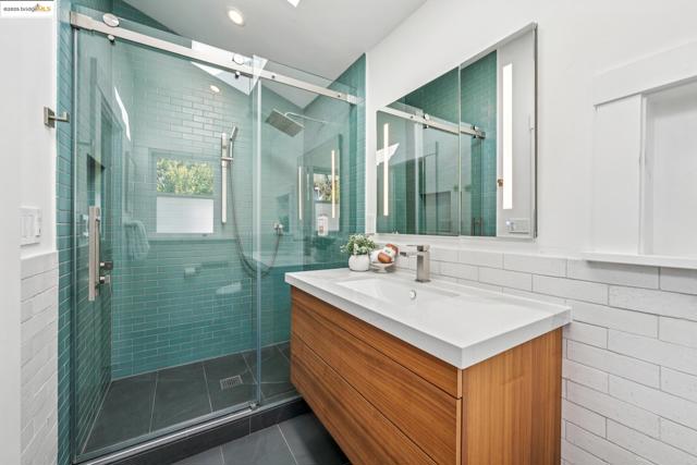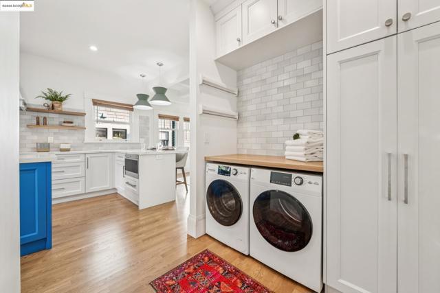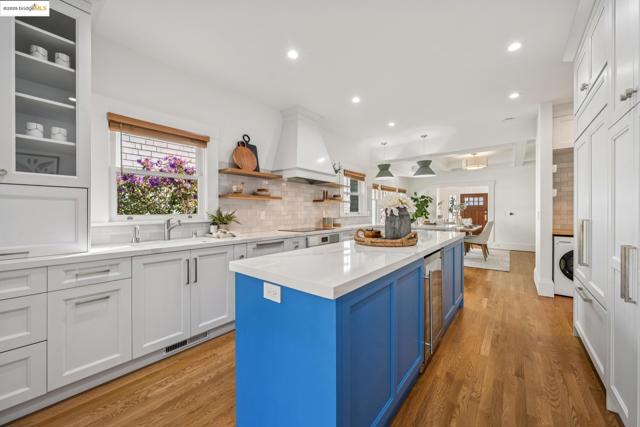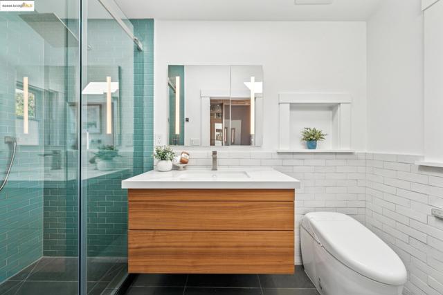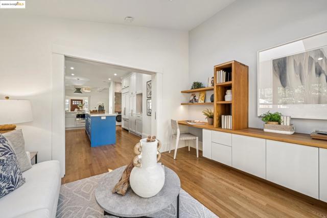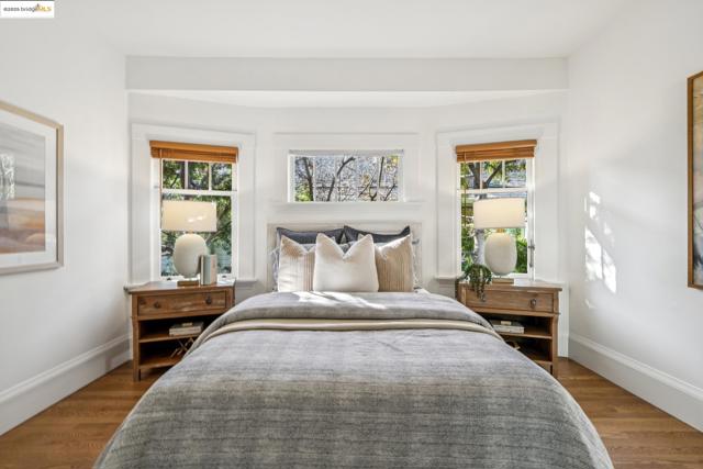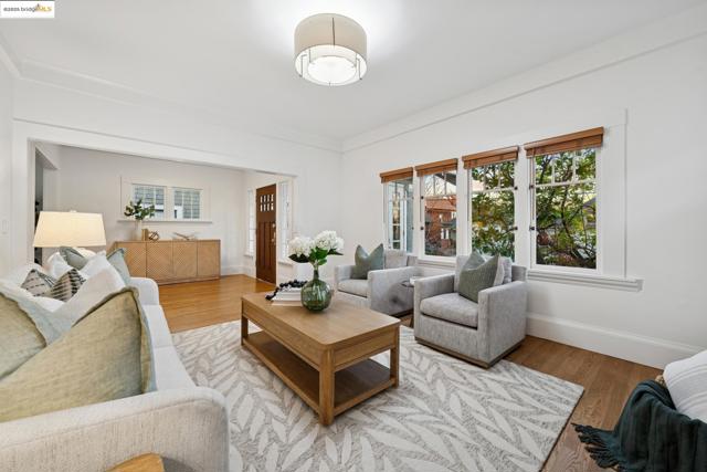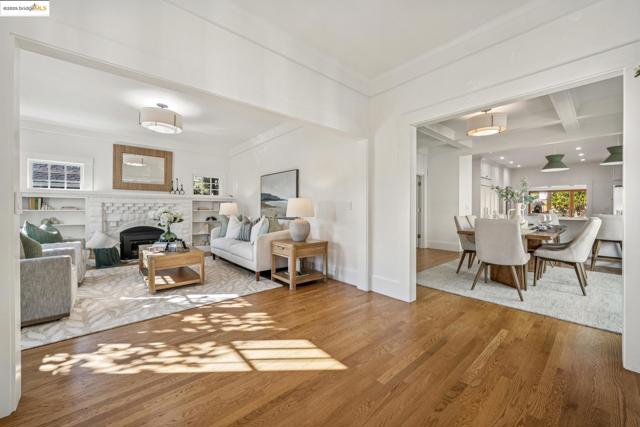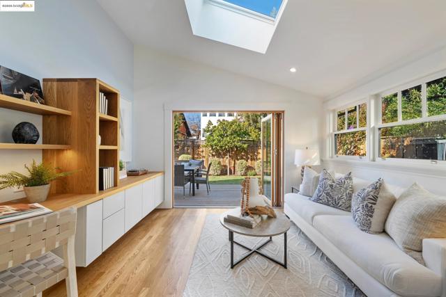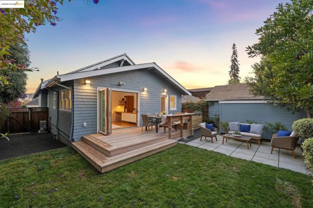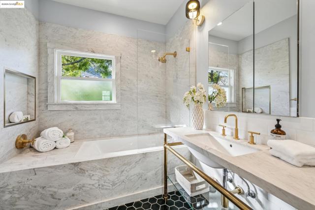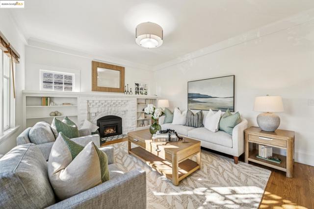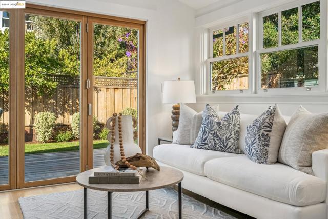 Nestled in the coveted Rockridge “Golden Triangle,” this exquisitely reimagined 1912 California bungalow blends timeless charm with understated modern luxury. Transformed by a local architect and builder, this single-level stunner greets you with vaulted ceilings, an airy open-concept floor plan, and sophisticated designer finishes at every turn. Custom millwork, hand-selected wallpaper, and artisanal tile create a home that feels both elevated and effortlessly livable. The heart of the home is a breathtaking chef’s kitchen featuring striking two-tone custom cabinetry, quartz countertops, premium appliances, and a breakfast bar for morning coffee. Both bathrooms have been taken to new heights: the hall bath is a true showpiece with its sculptural marble soaking tub offering spa-like serenity, while the primary bath offers equally refined finishes and tilework. The cozy lounge area at the rear leads out to a flat, manicured garden oasis. A large sun-drenched deck and built-in seating area make outdoor entertaining a delight. Systems updates include a newer foundation/drainage (Duval), 200-amp electrical service, abundant new windows, newer roof with owned solar, and central air conditioning. Blocks to Rockridge BART, restaurants, and shops.