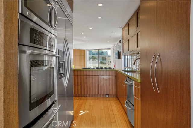 Don’t pass this exceptional opportunity to move into the best condo in the community that you absolutely will fall in love with. This lovingly maintained and spacious corner-unit 2-bed/2.5-bath ocean-view home is just steps to the sand with private access to the beach and bike path. When you’re not at the beach, you can let yourself relax and spread out over a 1,564sf interior that was thoughtfully remodeled a few years ago with new wood flooring, high end kitchen cabinetry and appliances, updated bathrooms, and improved space utilization to make the home feel even bigger. The ultimate entertainer’s beach resort, there is a great room that opens to the kitchen with sprawling counter space, and a separate dining room for more formal dining. The primary bedroom is built for relaxation and adorned with a wrap-around balcony with ocean views and a breath of the ocean breeze always within reach. The primary bedroom also features an attached bathroom with a double sink and huge walk shower with dual shower heads. Both bedrooms are fitted with custom-built-in closets for efficient storage, and refreshed with new carpeting, and new paint. The unit also comes with a washer and dryer in unit, secured access, and two assigned side by side parking spots in the subterranean parking structure with additional storage for bicycles, and more. Community amenities include fitness center, pool and spa, jacuzzi, basketball court and club house with a full kitchen. Located in vibrant Playa Del Rey, you'll find a range of restaurants, gastropubs, and service retail options nearby, ensuring that you have a variety of choices for dining and other essentials. Transportation is a breeze with the Marina (90) Freeway just 5 minutes away, the San Diego (405) Freeway only 10 minutes away, and Manhattan Beach a short 5-minute drive, with the rest of the world within reach via nearby LAX airport.
