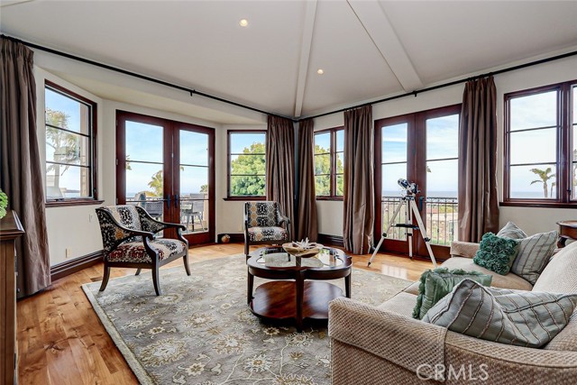Situated in the prestigious Hill Section lies this beautifully maintained Mediterranean masterpiece. Boasting 5 beds, 4.5 bath, 4700SF of living space (TTV) on a corner ocean view lot. West and South views of the ocean encompass the top floor with multiple areas to entertain, relax and enjoy. Recently painted, this custom home offers privacy with the master suite off the front entry, a private courtyard with south facing sunlight, extra large master bath and walk in closet. The top floor includes a private, intimate sitting area with south facing sunlight, ocean views, great for enjoying a glass of wine or reading a book. An entertaining kitchen offers plenty of space for friends to come hang out around a large island, powder bath and nice vaulted ceilings. Walking through the French doors leads you to a private covered patio with fireplace, Infratech ceiling mounted heaters and a wet bar with beverage fridge. Following down the dramatic staircase leads you to the full basement with guest room plus bath, entertainers bar with seating, pool table, flatscreen tv over fireplace, great for sports watching or hanging out with friends. A short walk to the beach and downtown and located in the award winning Robinson School District. Don't miss out!!