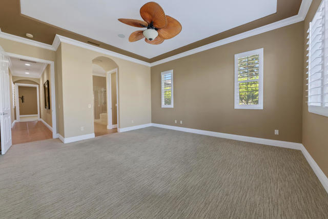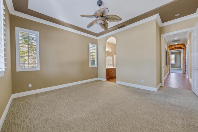 Available February 1st -- Stunning Lease Opportunity in Amatista at Capri!Live the desert lifestyle in this beautifully upgraded residence offering luxury, flexibility, and exceptional comfort. Freshly painted and thoughtfully enhanced, this home features granite countertops, 20x20 tile flooring, crown molding, solar panels, and elegant shutters throughout, creating a refined and energy-efficient living experience.Designed for versatility, the floor plan includes two primary bedroom suites, ideal for multi-generational living, guests, or a private office setup. One suite doubles as an attached casita with its own courtyard entrance, while the primary retreat boasts custom built-ins and a beautifully finished walk-in closet.Step outside to your own private sanctuary--an expansive 10,000 sq. ft. lot with a Pebble Tec pool, beach-entry, and spa, offering the perfect setting for unwinding or entertaining in total privacy. The oversized 2-car garage with tandem storage provides ample room for vehicles, equipment, or seasonal items.Perfectly positioned on a quiet cul-de-sac, you're just moments from Ronald Reagan Elementary and the vibrant amenities of Freedom Park--including sports fields, courts, playgrounds, dog park, and open green spaces. Nearby shopping, fitness centers, and freeway access add to the convenience.This serene desert retreat is the one you'll want to call home.