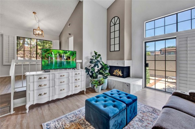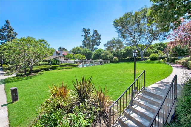 Private and quiet interior location along side an expansively manicured lush and shady greenbelt conveniently outside front door..Formal entry with beautiful wood floor, just 5 step-up stairs to upper level bedrooms/baths (otherwise single level)..Nicely upgraded remodeled kitchen with garden window, ample counter space/matching backsplash, abundance of storage cabinets, stainless range, microwave, refrigerator, washer/dryer included, open separate living/dining rooms, w/high ceilings, elevated fireplace/tile surround leads to sunny connected patio brightly illuminating inner area, lovely primary suite extends to luxuriously refurbished baths, sizable secondary bedroom, shutters, mirrored wardrobe, designer light fixtures, attached two car garage, short walk to community pool/spa, parks, tennis/volleyball courts, Turtle Rock Community Center, close to University High School, Bonita Canyon Elementary, UCI, short drive to Fashion Island, Laguna/Corona Del Mar beaches, Irvine Spectrum, hiking trails, and John Wayne Airport