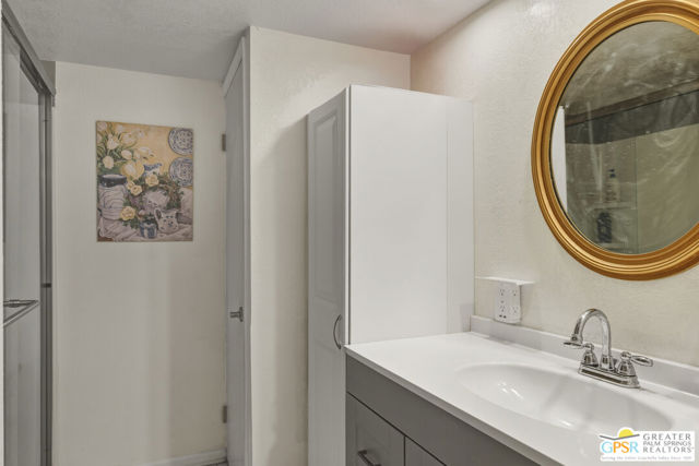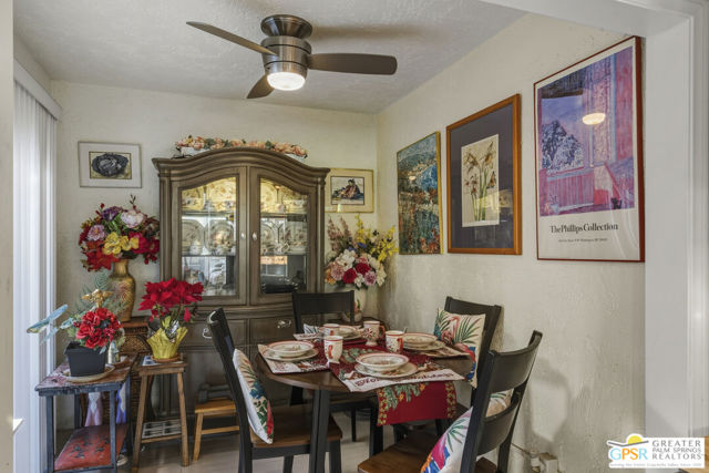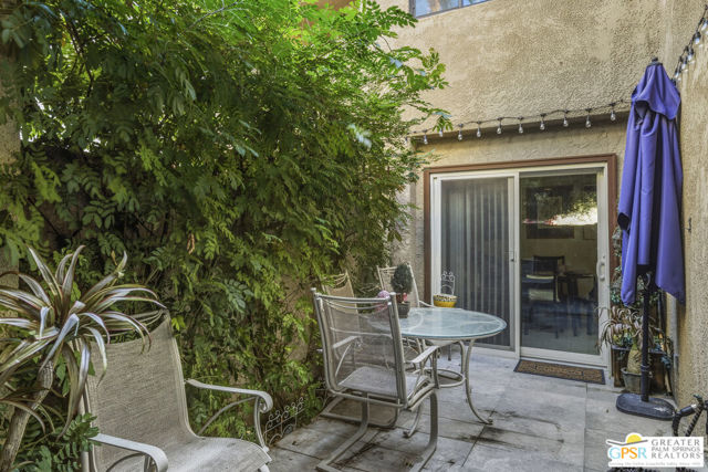 Fee Simple, prime, ground floor unit in Pueblo Sands with mountain view and laundry. This unit has many upgrades and features that make it unique. Double pane windows and sliding glass doors! A retractable sun shade in the front patio! This unit has a rare gate on the back patio for easy access. Part of the patio was enclosed to create a dining room with french doors. The owner installed a gorgeous buffet with cabinets (butler's pantry) in the former dining room. The large kitchen and butler's pantry area have butchers block countertops. There are recessed lights in the kitchen and bathrooms. There is a wall cut out creating an open kitchen and living room concept. There are some smooth ceilings, and a walk in closet. Enjoyable mountain and courtyard veiws from the windows. Pueblo Sands is a gated community with 2 pools, 2 spas, dog park, and clubhouse. It is close to beautiful El Cielo Rd and Tahquitz Canyon Way and the Palm Springs International Airport. Accessible cafe's, salons and dining by the airport next door or head 2 miles west to Downtown Palm Springs. Easy access to the Smoketree Shopping area and the Gene Autry shopping area. The owner is looking do a seller lease back as a long term tenant. Great opportunity for someone wanting to purchase an income property or 1031 exchange! Buyer to verify all details