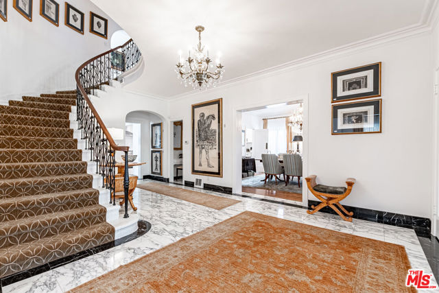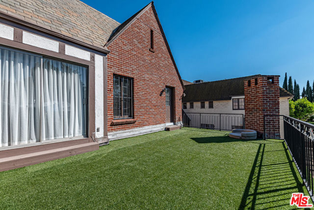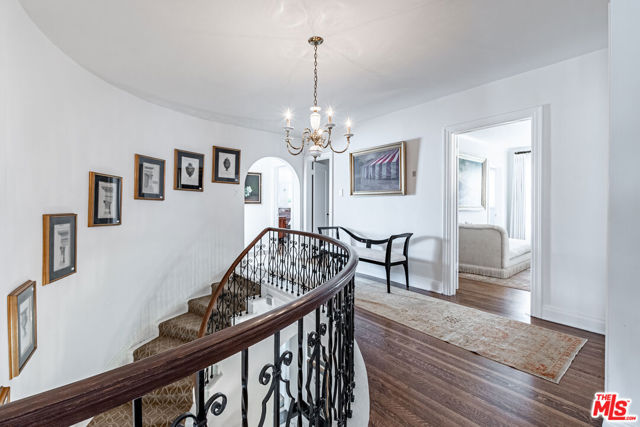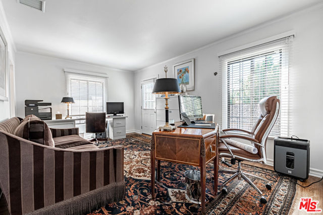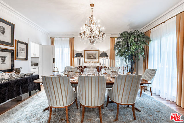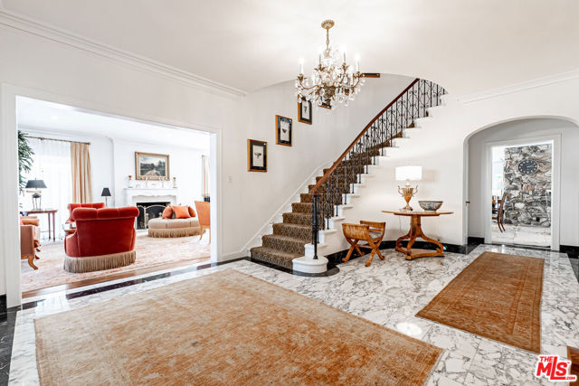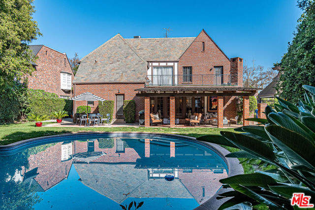 Timeless Tudor Charm with Modern Comfort in a Prime Tree-Lined Setting. This beautifully updated English Tudor blends 1920s elegance with the ease of modern living. From the moment you step into the gracious entry and take in the sweeping staircase, you'll feel the character and charm that make this home special. The sun-filled living room flows effortlessly into a spacious family room with a cozy fireplace and French doors that open to a lush, private backyard. The newly remodeled kitchen is a chef's dream, featuring high-end appliances, generous counter space, and abundant storage. A formal dining room adds the perfect touch for entertaining. Downstairs, you'll also find a guest powder room and a maid's room with its own en-suite bath ideal for guests or flexible use. Upstairs, the expansive primary suite offers four large closets, lovely natural light, and a spa-like bath. Three additional bedrooms and two updated bathrooms provide ample space, while a separate home office overlooks the landscaped yard. Step outside to enjoy gated grounds complete with a sparkling newly resurfaced pool, a dining patio, grassy play area, and a detached two-car garage with extra storage. Central air and heat ensure year-round comfort, and all the original character, hardwood floors, vintage details, and architectural charm remains intact. This is a home that feels both stylish and welcoming, located on one of the neighborhood's most desirable streets.