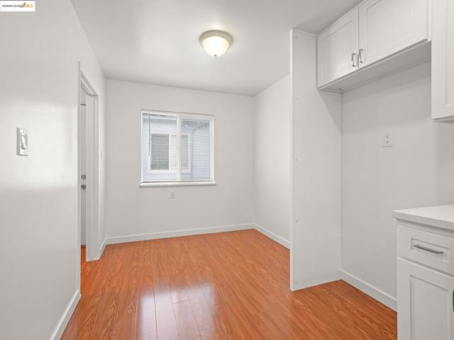 Beautifully renovated apartment in San Leandro’s desirable Halcyon neighborhood. This updated unit features an open-concept kitchen with new countertops with bar seating and new flooring, a newly remodeled bathroom, and hardwood floors throughout. The layout includes well-sized bedrooms with ample closet space and in-unit washer/dryer hookups for added convenience. A private garage and an additional parking space are included. Excellent location close to Halcyon Park, major freeways, shopping, and dining. Move-in ready and designed for comfort and modern living.