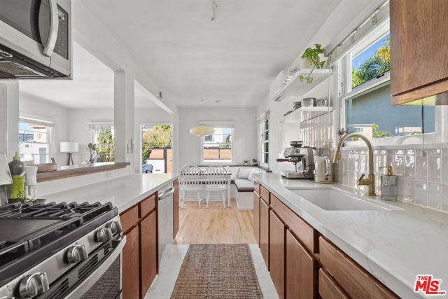***Available for 6 months*** Tucked behind a private gate in the heart of Venice, this bright and charming 2-bed (+bonus room), 1-bath bungalow offers easy coastal living. Sunlight pours into the open living and dining areas, featuring warm wood floors and a cozy built-in breakfast nook, while the updated kitchen showcases generous counter space and stainless appliances for effortless cooking and entertaining. Two comfortable bedrooms provide peaceful retreats, complemented by a clean, airy bath and convenient in-home laundry. There is also a bonus room, perfect for an office! Step outside to a spacious, beautifully landscaped patio and turf yard with multiple lounge and dining zones perfect for morning coffee, weekend BBQs, or hosting friends after the beach. All of this in an unbeatable Venice location near Abbot Kinney, shops, cafe's, and the sand -- your quintessential SoCal rental awaits.