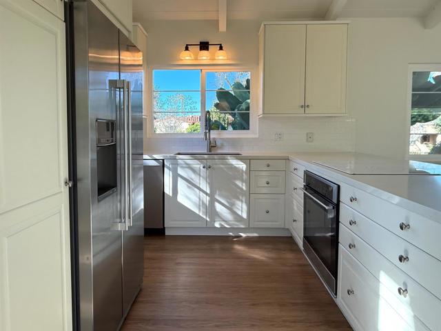 Enjoy real, house-like living in this bright, breezy, Spanish-style casita. Tastefully renovated, 6119A, places you a world away, with its private, gated yard, surrounded by lush green, set in the picturesque village of Rancho Santa Fe, while keeping you in the middle of everything...with its short walk to shops and restaurants, a short drive to beaches & shopping, and less than an hour to downtown San Diego, the Zoo, Wild Animal Park and other local attractions, as well as eligibility for the highly rated Roger Rowe School. Carefully conserved, exposed beam construction, fireplace, newer kitchen cabinetry & countertops, stainless steel appliances. Interior laundry included. Bathrooms have been updated with porcelain tile, modern cabinetry & basins along with clean glass and stainless details to achieve a truly spa-like feeling. Detached one care garage located off rear alley.