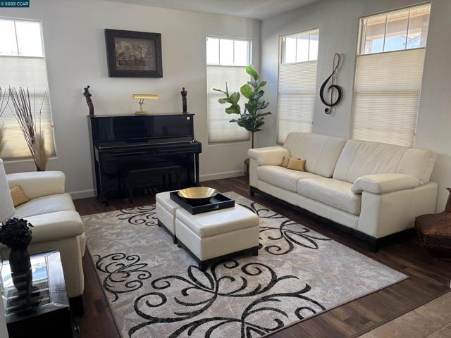In the desirable Eden Shores neighborhood. Immaculately maintained 5BR/4.5BA home with office in desirable Hayward neighborhood. Features brand-new laminate flooring throughout all upstairs bedrooms, hallway, living room, and guest bedroom, with tile in all bathrooms, office, laundry, kitchen/family room, dining area, den, and downstairs hallways. Plantation shutters in the office, primary bedroom/bath, family room, and kitchen slider; window coverings and shades throughout additional rooms. Included appliances: Whirlpool washer/dryer/refrigerator (2020), GE microwave/oven/cooktop/hood, Maytag dishwasher, plus GE garage refrigerator and Kenmore upright freezer. Outdoor furniture—including children’s playhouse—conveys, along with three side-yard storage containers and three upright garage cabinets. Fully operational Koi pond with equipment and over 10 Koi included. Seller to pay off solar at closing. Move-in ready with exceptional care and generous included features.