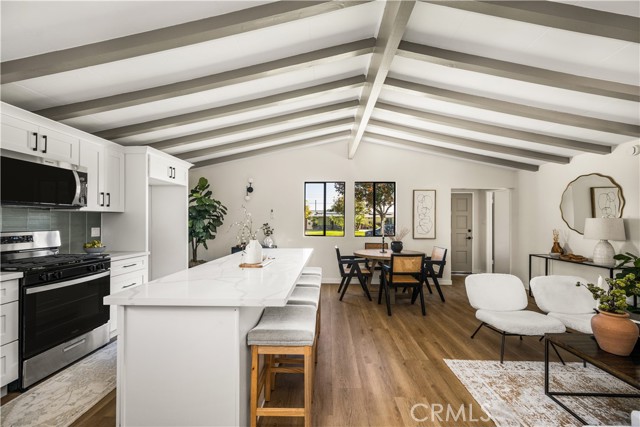 Welcome to this stunning 4-bedroom, 2-bathroom home, where you are greeted with a warm Mid-Century Modern vibe the moment you step inside. Thoughtful updates blend seamlessly with the clean lines and airy openness that define this timeless style. Inside, you'll find new flooring, fresh interior paint, and a bright, inviting layout. The brand-new kitchen features sleek new cabinetry, modern quartz countertops, new stainless-steel appliances, and updated fixtures — perfect for everyday living and entertaining. Both remodeled bathrooms offer contemporary finishes and a fresh, polished look. With four generously sized bedrooms, you'll have plenty of space for family, guests, or a home office. Additional upgrades include a new layer on the roof, providing long-term peace of mind. The backyard offers a versatile outdoor space ready for your personal touch and ideal for relaxing, gardening, or hosting friends and family. Conveniently located near schools, parks, shopping, and dining, this move-in-ready Anaheim gem delivers modern comfort with unmistakable Mid-Century Modern charm.