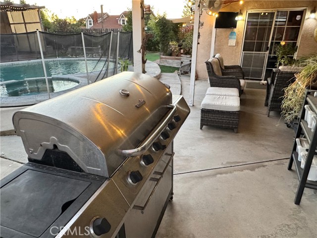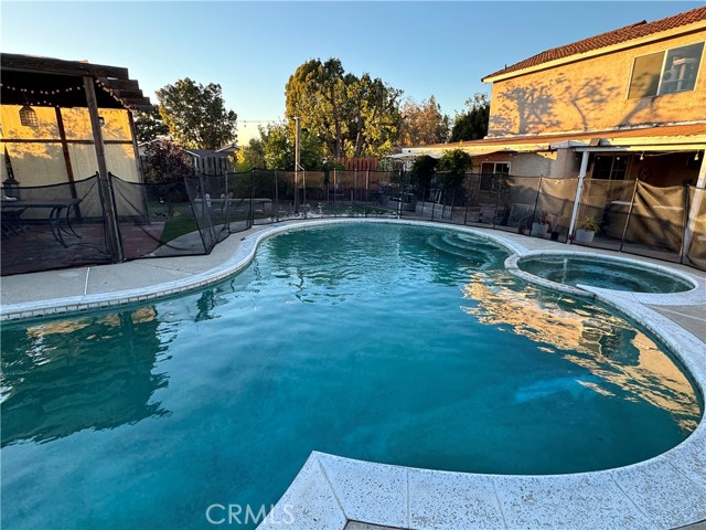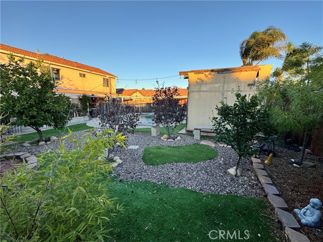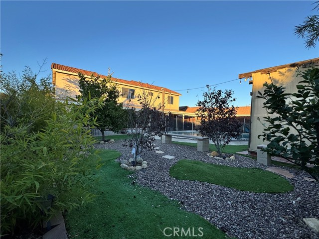 Imagine coming home to this stunning, two-story residence, perfectly situated on a corner lot directly across from Chaparral Park. Featuring drought-tolerant landscaping (xeriscaping), you are welcomed by elegant double doors that open up to high-vaulted ceilings that add to a bright, inviting living space. The living room flows effortlessly into the dining area and heart of the home, the open-concept kitchen. Whether preparing holiday meals or just enjoying everyday moments, this kitchen is a home owner's dream. The first floor also features a convenient half-bath, ideal for guests. Attached to the home is a 320 sq. ft. enclosed patio which has been converted into two versatile bonus living spaces that include air conditioning. One can serve as a den or family room that opens directly to the covered patio overlooking a sparkling swimming pool and spa. The backyard is fully xeriscaped, providing a private, relaxing oasis. The two-car garage has been thoughtfully divided to include both an exercise space with a tooling workbench and a cozy movie theater room, adding versatility and fun to the home’s design. The second floor features a main suite with a private bathroom, along with three additional bedrooms and a full bathroom. A charming balcony on the landing overlooks the first floor, offering a beautiful vantage point of the living space below. Just behind the balcony, a sunlit loft provides a scenic view of the backyard and the rolling Southridge Hills. This home is located near the 10, 60, and 15 freeways, conveniently placing so many of Southern California's hot spots within easy reach. The overall blend of comfort, functionality, and lifestyle offers an all in one gem, all within the desirable Southridge Village community.