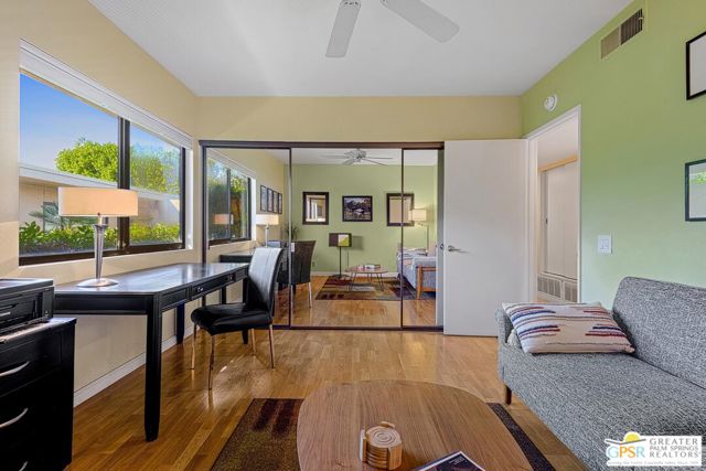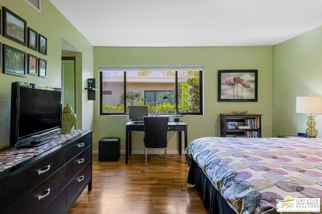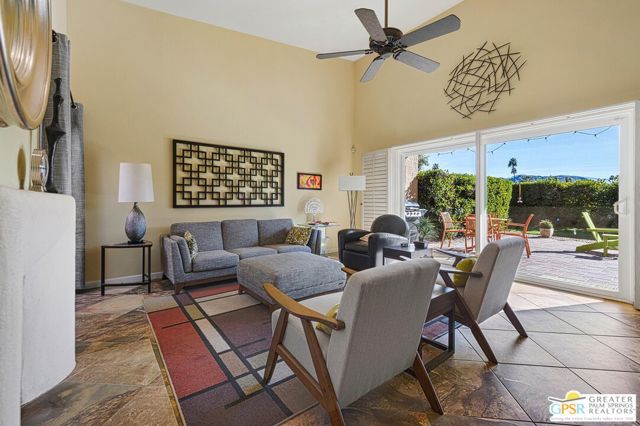 The three guiding principles of Palm Springs real estate are location, location, and Wexler. This centrally situated property offers convenient access to shopping, grocery stores, restaurants, the public library, the Cultural Center, the Palm Springs Aquatic Center, Power the local baseball team, and a year-round farmer's market. Suitable as a primary residence or vacation home, it provides an opportunity for relaxation on a private patio with a fire pit, while enjoying expansive southern and western views of the San Jacinto mountains. The Rose Garden community features mid-century architecture and includes two swimming pools, three spas, pickleball and tennis courts, cable and internet services, and a small dog park set within 14 acres of meticulously landscaped grounds. The property boasts an updated kitchen and remodeled bathrooms, making it truly move-in ready. Please contact me to schedule a showing or utilize the virtual tour provided in this listing.