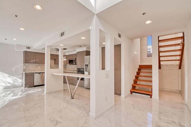 A chic peid a terre in Palm Springs! This lovely loft style 2 bedroom / 2 bath home at Village Racquet Club!! This townhome is 2 stories tall- divided into 4 split floors. With over 1600 square feet of living space, this townhome is located in central Palm Springs just blocks away from the city's best restaurants and nightlife. The main level living room has a fireplace and vaulted ceilings that open to a private balcony with mountain views. Enjoy the privacy of the quiet terrace level den, dining area, and intimate courtyard. The custom upgraded kitchen features stainless appliances and gas cooktop. The oversized primary suite has an extension, perfect for a home office or reading room, along with two walk-in closets. Freshly painted throughout and ready to move in! The home has a private, oversized one-car garage with laundry. Village Racquet Club has 8 pools and spas, tennis and racquet ball courts, gym, and a clubhouse all within a beautifully landscaped, gated community.1 year + rental.