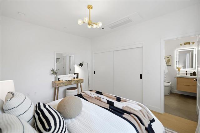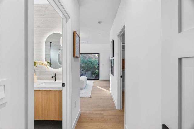 This brand-new, ground-up home (Includes ADU 743 Sqft) in downtown Sunnyvale captures the essence of modern luxury. Built as a forever home, every detail from the row of windows to the curated accent lighting was designed with care. The gourmet kitchen is a true showpiece, featuring Thermador luxury appliances, a striking waterfall island, custom cabinetry. The open floor plan flows seamlessly into the living area, where a recessed ceiling adds an extra touch of style to the space, and the fireplace creates a cozy spot to unwind at the end of the day. Both upstairs bedrooms are full suites with private baths. The primary suite includes a skylit walk-in closet, a beautifully finished bathroom with double sinks and backlit mirrors, and a private balcony. Downstairs features two private suites, ideal for multi-generational living or extended guests. The ADU is a huge bonus which has interior access from the living room and its own private entry from outside, giving you maximum flexibility for family, visitors, or income potential. With easy access to Highways 237, 85, 101, and Central Expressway, and just minutes from City Hall, shopping and dining; walkable to Washington Park and zoned for Homestead High School. A home that balances thoughtful design, and long-term value!