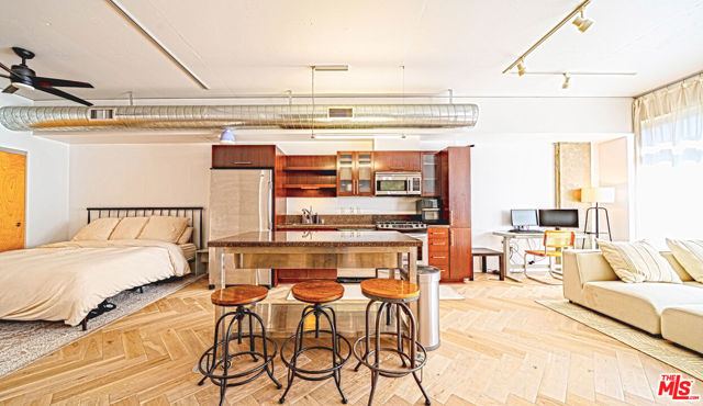 Luxury loft located in the coveted South Park, Downtown Los Angeles, LEEDS certified Elleven building. This versatile 7th-floor east-facing unit with high ceilings offers stunning panoramic city views through floor-to-ceiling windows, excellent natural light. The open layout is complemented by new herringbone white oak hardwood floors throughout, stainless steel appliances, a very large utility room with in-unit washer and dryer, and closets for ample storage. Additional features include NEST thermostat, in floor plugs, and a Juliette balcony. The unit also includes a deeded parking space conveniently located in garage near elevator. Residents at Elleven enjoy huge energy savings and lots of amenities, including a resort-style pool and spa, outdoor BBQ stations, fireplace, fitness center, sundeck, waterfall features, gas heat lamps, and the peace of mind of 24-hour security and concierge service. A Starbucks is conveniently located on the first floor for quick coffee breaks. The prime South Park location offers unbeatable walkability, with Whole Foods, LA Live, Crypto.com Arena, shops, cafes, and top-rated restaurants just steps away. Easy freeway access makes commuting simple and efficient. Landlord pays for parking, water, trash, gas. Tenant pays for electric, cable, renter's insurance.