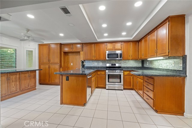 Nestled within the tranquil Compass Rose Community, this modest single-story corner lot home offers a peaceful setting and exceptional privacy in one of the most desirable areas north of the 210 FWY. With one of the largest lots in the neighborhood, this property features beautiful brickwork and custom exterior flooring that extends gracefully throughout the entire perimeter of the home. Step inside to discover 2,172 square feet of comfortable living space, featuring 4 bedrooms and 2 full bathrooms. The home offers Central A/C and Heating, plantation shutters, and a cozy gas-burning fireplace in the family room. The main living areas include a welcoming living room, formal dining room, family room, kitchen, and breakfast nook. The kitchen is well-appointed with granite countertops and KitchenAid stainless steel appliances, including a 5-burner gas stove, microwave, and dishwasher. The flooring throughout the home blends both style and practicality with engineered wood flooring The spacious primary bedroom offers a double-door entry, dual closets, double sinks, a separate soaking tub, and a private enclosed toilet and shower room. The home also includes a 3-car attached garage with a large mezzanine area above it for extra storage or potential creative use. Outdoors, the private setting continues with beautifully finished brick flooring, drip irrigation and automatic sprinklers throughout, and motion security lighting at all four corners of the house. The backyard offers an impressive variety of fruit trees, including lemon, grapefruit, and orange trees, as well as a covered detached patio area perfect for outdoor entertaining. RV parking with automatic gates provides convenience, while direct access from the side of the house leads to a large basement area—ideal for a workshop, hobby space, or storage with endless possibilities. Another highlight of this property is the unfinished but fully plumbed outdoor BBQ area, complete with gas, water, and electrical hookups, along with designated slots for a grill, rotisserie, pizza oven, and cabinetry. The hard work has been done—just add your finishing touches to create the perfect outdoor kitchen. Outdoor candlestick lighting enhances the ambiance of both the front and back yards, with the front yard lights fully automated. Located within walking distance to Los Osos High School and Chaffey College.