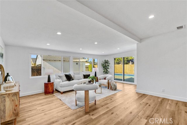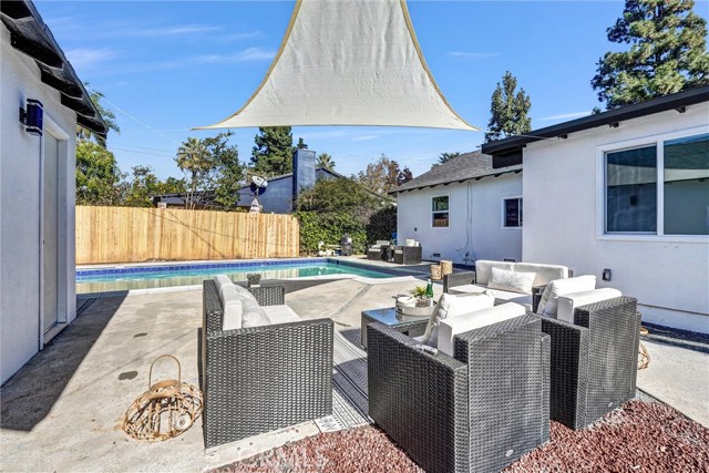 Welcome to 10505 Halbrent Ave, an exquisitely reimagined, turnkey modern ranch-style home located in the heart of Mission Hills. This 3-bedroom, 2-bath, 1,748 sq ft residence sits proudly on a large corner lot and features a stunning swimming pool, a spacious detached garage, and an open, airy floor plan ideal for today’s lifestyle. Step inside to a fully renovated interior where every surface has been thoughtfully redesigned. The expansive living room is filled with natural light and flows seamlessly into the dining area and the brand-new chef’s kitchen. The kitchen showcases all-new custom cabinetry, quartz countertops, designer backsplash, stainless steel appliances, and an oversized peninsula perfect for entertaining. The private primary suite features a walk-in closet and a beautifully updated en-suite bath with a luxury shower, modern finishes, and a contemporary navy double-vanity. Two additional spacious bedrooms share a second fully remodeled bathroom with premium fixtures and tilework. A dedicated in-home laundry area adds convenience and function. Outside, enjoy a backyard built for relaxation and gatherings: a sparkling in-ground pool, multiple lounging areas, fresh hardscape, and new fencing that provides privacy and a clean, modern aesthetic. The detached garage offers secure parking, storage, or potential ADU possibilities (buyer to verify). The large lot and corner frontage add curb appeal and expand future potential. Located minutes from shops, restaurants, prime schools, the 405/118 freeways, and local parks, this home offers the perfect blend of modern comfort and everyday convenience. A rare chance to own a beautifully remodeled pool home in one of the most desirable pockets of Mission Hills. Move-in ready. Completely updated. Truly one-of-a-kind. Award Winning Schools