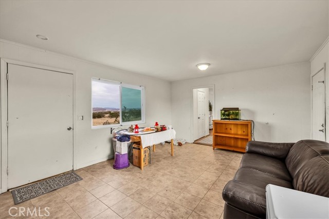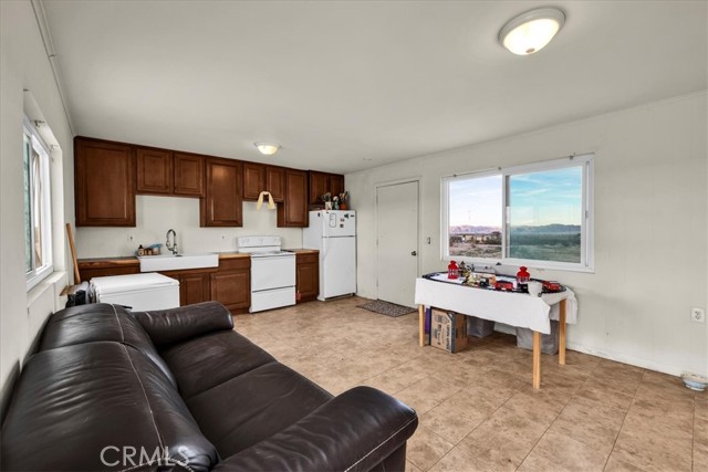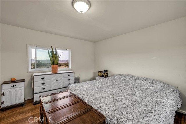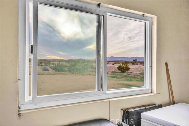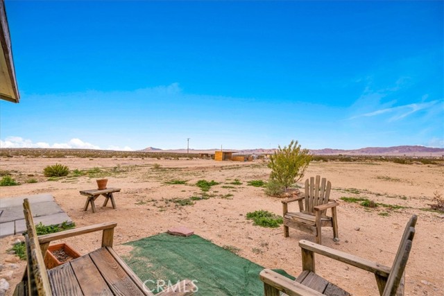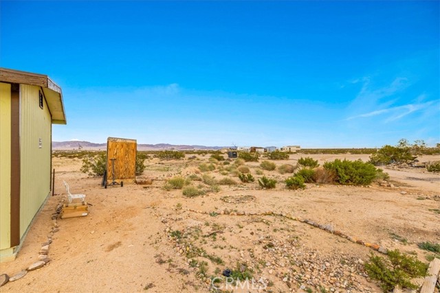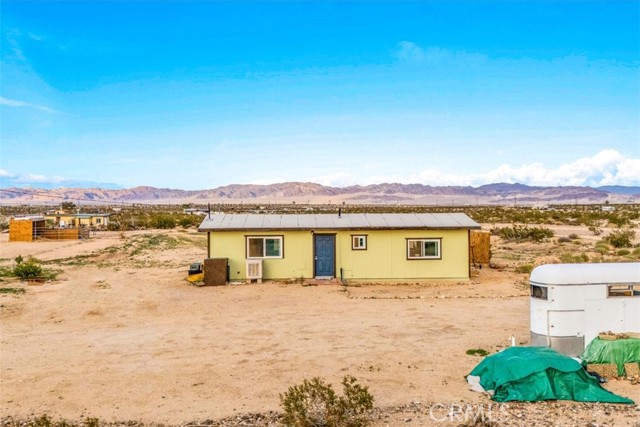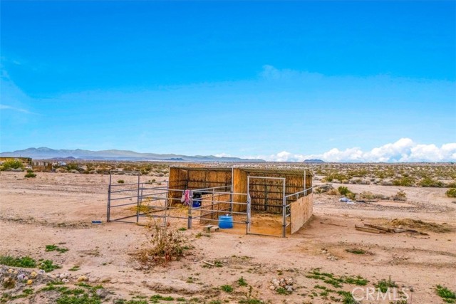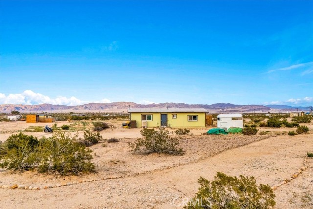 Step onto your own slice of paradise and history with this Original Jackrabbit homestead that is tucked away in a cove on 2.5 acres with panoramic views. Spacious one bedroom, one bathroom that features views of seven mountain peaks, fully tiled tub and shower combo, tile flooring inside the kitchen and wood composite flooring inside the bedroom. The kitchen is inviting with its butcher block counter top, deep porcelain sink and large Milgard windows letting in the expansive scenery, while blocking the deserts UV rays. In the last four years, this Original Jackrabbit homestead has had new Milgard windows, septic tank, water heater, countertops and sink installed. The front yard has been professionally graded and leveled. The stalls are a permanent structure that offers many different uses year round like boarding Horses and other animals like chickens, goats, ducks. This Original Jackrabbit homestead is centrally positioned 20 minutes outside of Joshua Tree National Park, Joshua Tree, Yucca Valley, Twentynine Palms and a short drive to Indian Cove, multiple campgrounds and Joshua Tree Village.