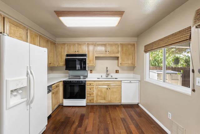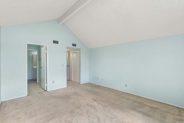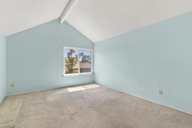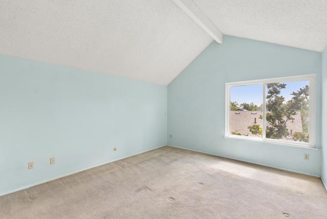 Located in the highly sought-after neighborhood of Villa Portofino in the heart of Tierrasanta, this 4-bedroom, 2-bathroom home is a blank canvas ready for your personal touch. The living room offers a warm welcome with its high vaulted ceilings, rich vinyl plank flooring, plantation shutters, and a beautiful brick fireplace as the focal point. One bedroom and a full bathroom are conveniently situated on the first floor. Upstairs, you'll find the bright and spacious primary bedroom featuring vaulted ceilings and abundant natural light, along with two additional generously sized guest bedrooms. Enjoy the private, wrap-around backyard and the community’s park-like setting, which includes a pool, spa, tennis courts, pickleball courts, basketball courts, a clubhouse, and a playground. Additional features include a two-car carport, an addition third parking space, and a low HOA fee.