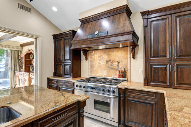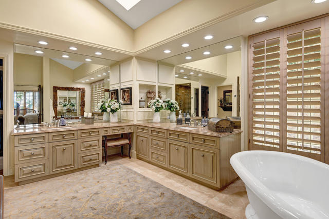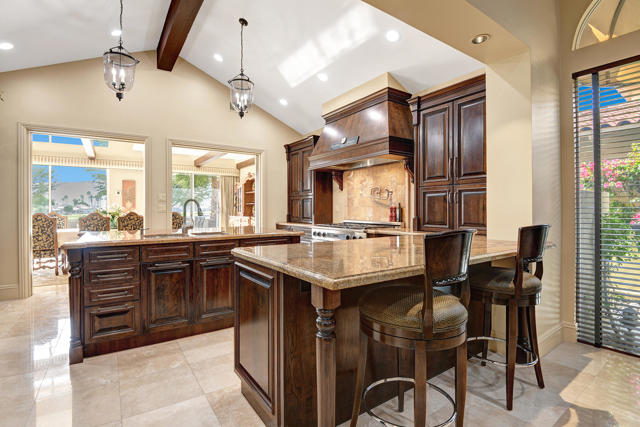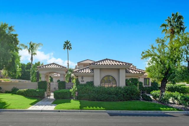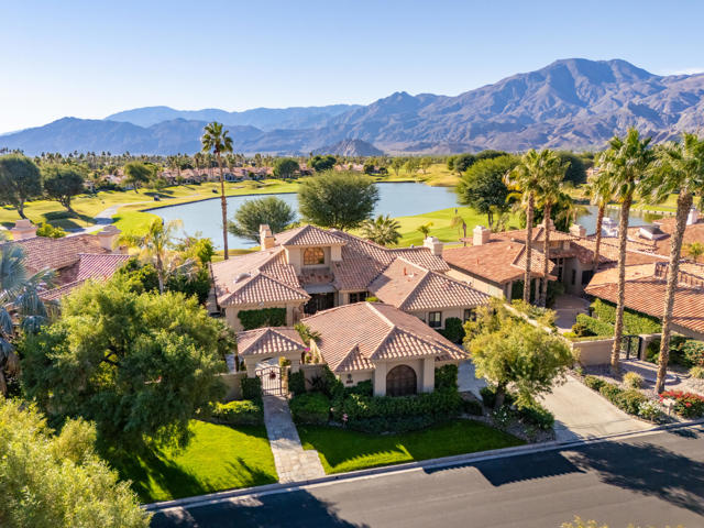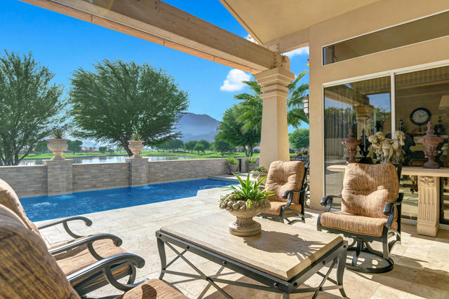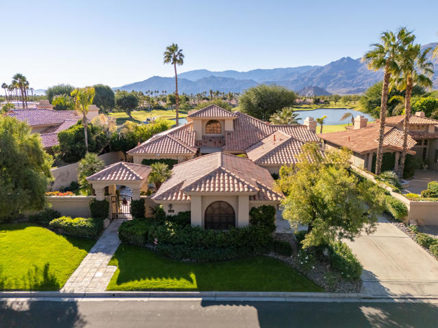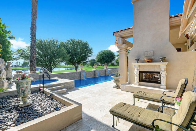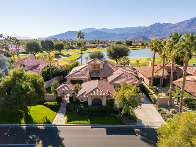 There isn't a more exquisite south-facing view of PGA West's Stadium Course and surrounding mountains available for purchase! Even though you'll already be sold on the home after taking in the panoramic golf course and mountain views of the 6th and 7th holes from your newly renovated back patio space. It's still worth noting all the incredible features this home has to offer! As you walk through the entry gate, you're immediately struck by the beauty of the landscaping and the tranquility of the water feature, creating a zen-like environment to gather one's thoughts. Through the courtyard you reach the grand entry of the home, which yields a sneak peak of the ''Wow Factor'' soon to come. The Living Room, Dining Room, Kitchen and Primary Suite all share the same stunningly framed views of the back patio, bringing the amazing qualities of the exterior to the interior. Highlights and features of this home include: imported iron & glass double doors, polished stone flooring, high beamed ceilings, hidden bar and wine fridge, and custom floor-to-ceiling fireplace. The chef's kitchen features custom wood finishes, top-of-the-line Dacor, Miele & Sub-Zero appliances, a walk-in pantry, & convenient breakfast bar. The third bedroom has been transformed into an large office, offering a functional area.The primary bathroom has been completely remodeled with a luxurious soaking tub. A new HVAC unit was also just installed as well! There's really too much good stuff to list about this home, the details are endless. Come see for yourself! Buyer to verify all information.
