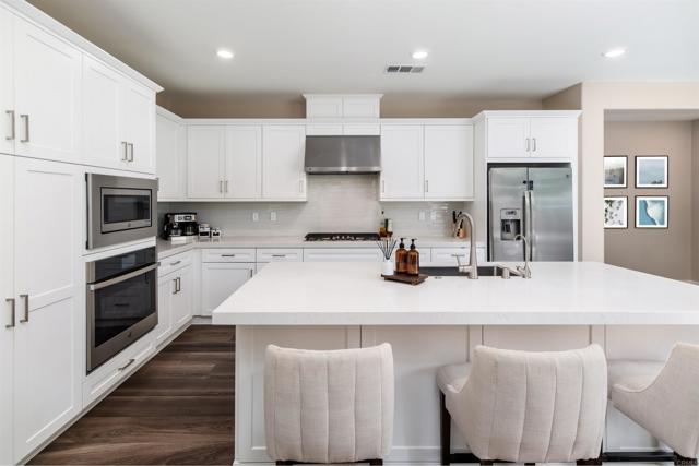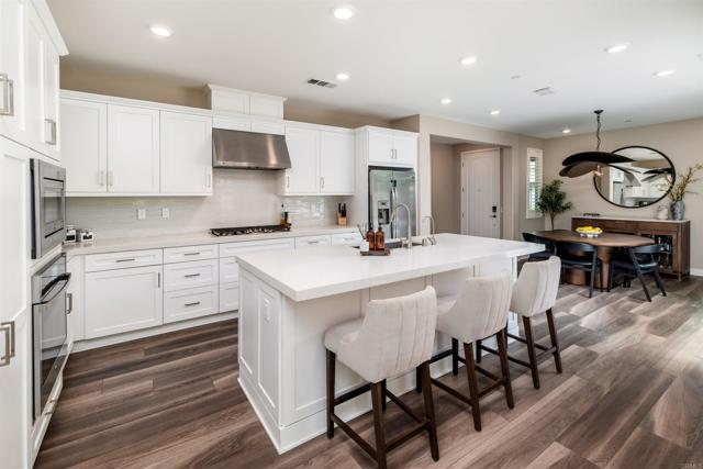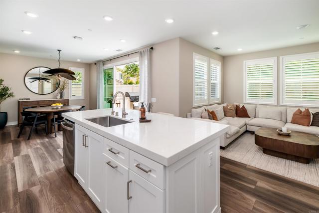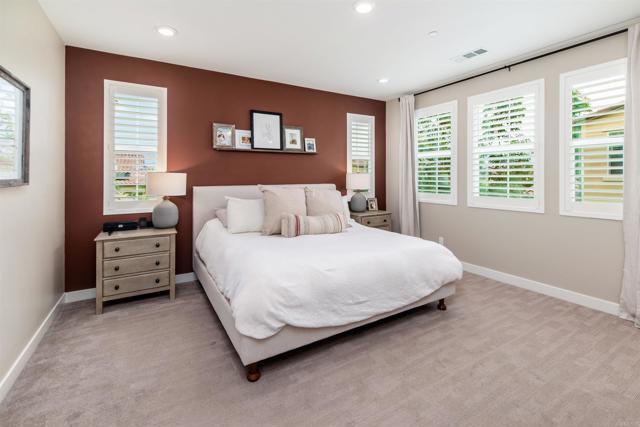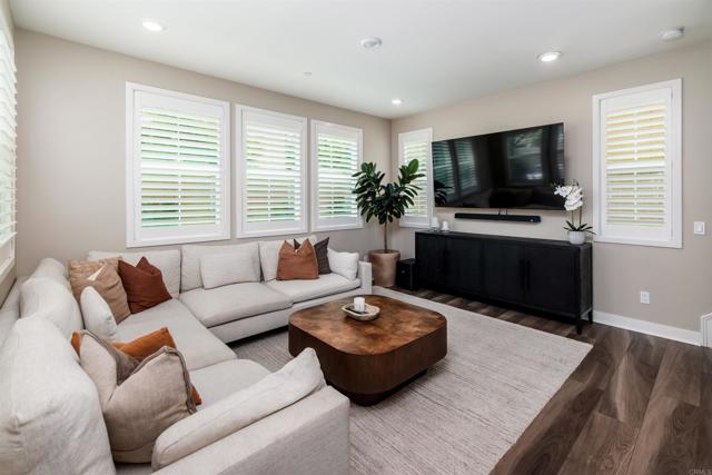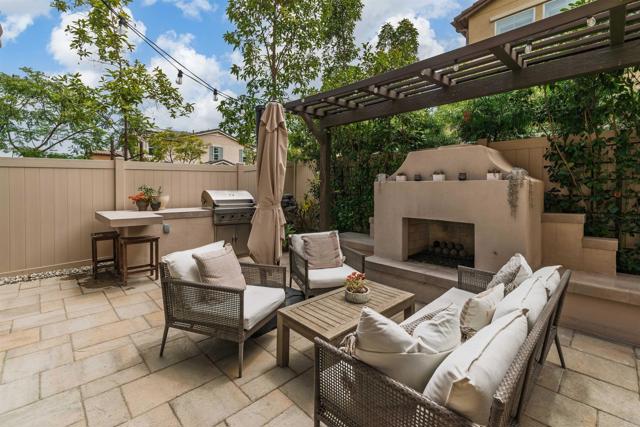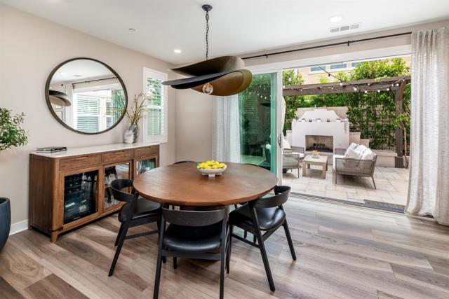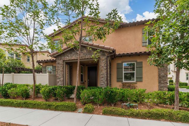 Set on a premier corner lot in Carlsbad’s sought-after Treviso enclave, this home blends modern design with owner-selected upgrades and a true indoor–outdoor flow. With a main-level guest suite, spacious interiors, and resort-style community amenities, it’s move-in ready——calm and private on an interior street away from the main road. Inside, a south-facing orientation and thoughtful, open-concept main level create a sunlit interior where the kitchen, dining, and living spaces connect naturally. A wall of windows and oversized sliders off the dining area invite light throughout and open wide to a private courtyard with a built-in fireplace—the perfect spot for alfresco dinners or weekend gatherings. The gourmet kitchen is anchored by an island with breakfast-bar seating and finished with white Shaker cabinetry, quartz countertops, a glass-tile backsplash, and stainless appliances. In the living room, a wide expanse of windows keeps the space bright and welcoming all day. Upstairs, the primary suite feels airy and retreat-like, framed by plantation-shuttered windows and a spa-style bath with dual sinks, soaking tub, walk-in shower, and a generous walk-in closet. Two additional bedrooms share a full bath with dual sinks, and an upstairs laundry room adds everyday ease. Built in 2020 and meticulously maintained, the finishes still feel fresh, with upgrades that elevate every space. The open indoor–outdoor plan on the main level makes the home live larger than its square footage—polished, high-end, and easy to love. Energy-efficient features include owned solar and Wi-Fi–certified smart-home touches, such as Schlage keypad entry, a Ring video doorbell, and myQ garage app control. Treviso offers resort-style amenities including a pool and spa, playgrounds, and RV parking by reservation. You’re moments to top-rated schools (Aviara Oaks Elementary & Middle, Poinsettia Elementary, and nearby Aspirations Preschool), plus Park Hyatt Aviara and Omni La Costa resorts, Aviara Golf Club, greenbelts, and hiking trails—with quick I-5 access. Both Carlsbad Village and Encinitas are about a 10-minute drive, putting beaches, dining, and daily conveniences within easy reach.