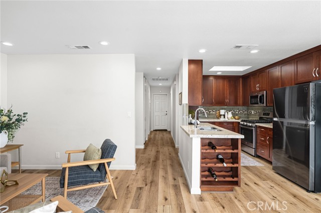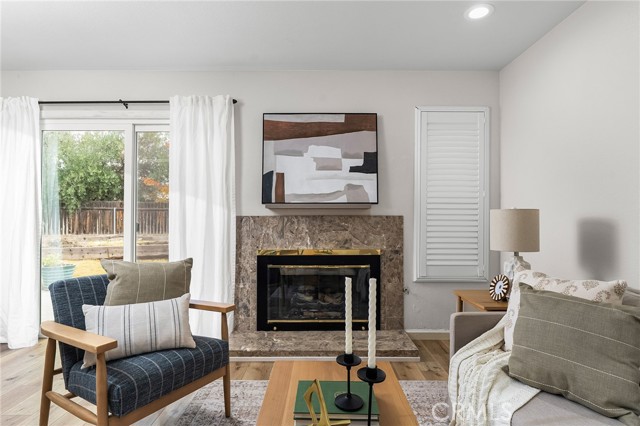 Welcome to 28 Wrangler Court—an adorable, move-in ready condo tucked away in a charming little neighborhood. This beautifully updated 1-bedroom, 1-bathroom home offers comfort, convenience, and incredible outdoor space you don’t often find in condo living. Inside, you’ll love the light wood LVP flooring that runs throughout the living areas, paired with plantation shutters in the living areas that add both style and privacy. The open floor plan creates an inviting flow, starting with the beautifully updated kitchen featuring dark wood cabinets, granite countertops, a stylish tile backsplash, stainless steel appliances, a built-in wine rack, and a skylight that fills the space with natural light. Just off the kitchen is a cozy dining nook that opens to the family room, complete with a gas fireplace for warm and relaxing evenings at home. The spacious bedroom offers plenty of room to unwind, and the bathroom includes granite countertops and a tub/shower combo. Additional highlights include a one-car garage and an impressively large backyard—perfect for outdoor dining, gardening, or creating the yard of your dreams. With a patio, raised garden beds, and space for grass, it's ready for your springtime projects. Located close to shopping and restaurants, this adorable condo has everything you need. You won’t want to miss this one!
