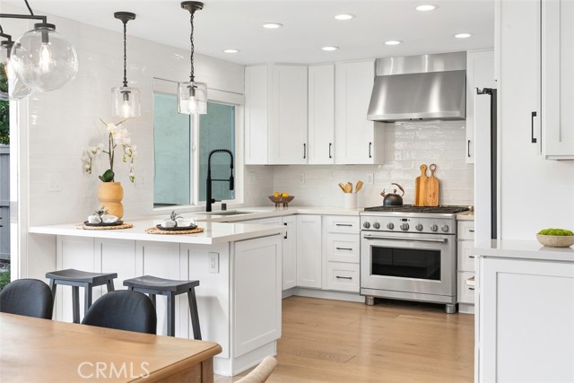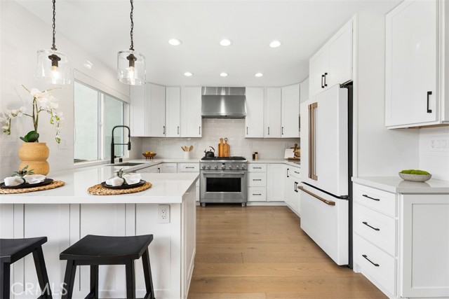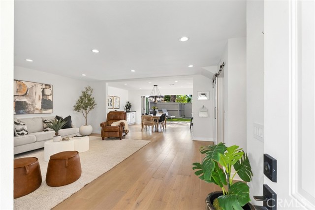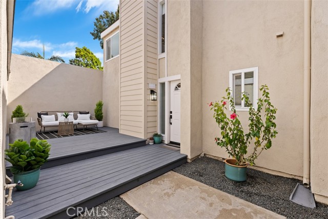 Stunningly updated Plan "C" model showcasing a full 2021 down-to-the-studs renovation plus premium upgrades added since. Remodel included a new HVAC/ducting, upgraded windows, recessed lighting, soft-close cabinetry, designer fixtures, full home automation, and a reconfigured downstairs bath with added walk-in shower. Hardwood flooring and a quartz-topped built-in buffet with dual refrigeration elevates the open, light-filled main level. Recent enhancements include new carpet, custom roller shades, an epoxy garage floor, a Noritz tankless water heater, and a quartz-topped entertainment cabinet framing the newly centered, modern tiled electric fireplace. The chef’s kitchen offers marbled quartz counters, GE Café appliances, a breakfast bar, and a walk-in pantry with bonus lighted storage. The adjacent 12’ accordion glass door opens to one of Beachwalk’s most private and premier backyard locations, creating a refined indoor/outdoor living experience while vaulted ceilings bring light, height, and modern comfort throughout the upstairs. The primary suite features a walk-in closet, dual vanities, and a large walk-in shower. Additional highlights include a gated front patio with room-addition potential for a main level bedroom, overhead garage storage with a utility sink and laundry hookups, and ADU possibilities. Ideally located near one of the community’s four satellite pools and set on a quiet cul-de-sac with ample guest parking. Beachwalk amenities include a Jr. Olympic saltwater pool, spas, saunas, sand volleyball courts, lush greenbelts, and renovated clubhouses. HOA covers roof, exterior paint, fencing, driveways, front-yard landscaping, and roof/fire insurance. Minutes to the sandy shores, Dog Beach, Pacific City, top-rated schools, and Downtown HB, this home delivers resort-style living and modern coastal elegance.