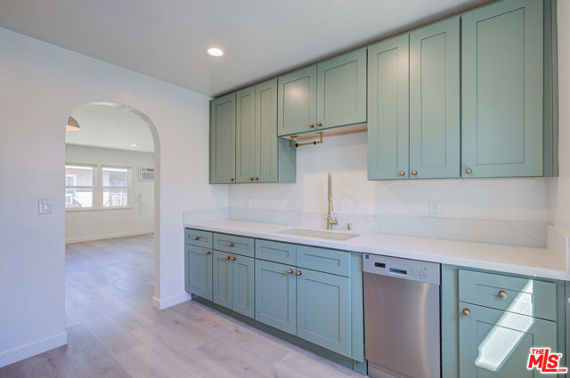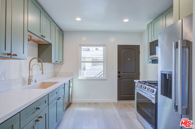 Available Now -Private Beautiful Upper Rear 2 bed! This upper rear 2BR is the most private and spacious residence in a quiet boutique fourplex. The interior has been completely reimagined with wide-plank LVP flooring, soft arches, warm brass hardware, and gallery-smooth walls. Features include: Upper-rear 2BR offering maximum privacy and quiet, Three exposures with balanced natural light, Wide-plank LVP flooring with warm, modern finish, Soft arches + gallery-smooth walls, West-facing living room windows, Dedicated dining area, LG stainless appliance suite: French-door fridge w/ water + ice, Gas convection oven, Microwave with vent, Stainless dishwasher, Sage-green cabinetry + antiqued brass knobs, Bisque quartz undermount sink with garbage disposal + brass sprayer faucet, Custom vertical tile bathroom with marble vanity, Frameless shower enclosure + hand wand, Quiet, vented bathroom fan, Dual-flush toilet, Private garage (fresh paint, new drywall, remote-controlled door), On-site laundry (coin-op: $3.75 wash / $2.50 dry), Young citrus along the rear stair, Fence planted for future bougainvillea + climbing rose, Mature trees creating quiet rear backdrop, New windows + doors, No pets, Renters' insurance required, Move-in: first month + maximum allowable security deposit.