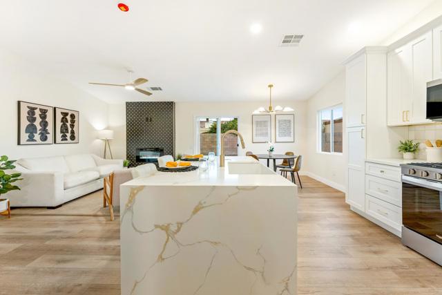 Beautifully Remodeled 3 Bedroom, 2 Bath Home in Central Indio - Pool & Spa, RV Parking, ADU Potential Welcome to this stunning, fully remodeled 1,300 sq ft home located in the heart of Indio. Every detail has been updated to today's modern living standards, featuring all-new windows, doors, flooring, interior paint, a refreshed exterior, a brand-new water heater system, and an upgraded AC system for year-round comfort. The open-concept great room blends the living area and kitchen, creating the perfect space for entertaining. Enjoy a custom electric fireplace with a striking tile surround, upgraded laminate wood flooring, and a brand-new chef's kitchen with a large waterfall island, stainless steel appliances, and custom cabinetry. The primary suite offers a luxurious retreat with a marble shower, dual vanities, and a spacious walk-in closet. The guest bedrooms and bathroom have also been fully updated with modern finishes. Step outside to a beautifully refinished pool and spa featuring a fresh pebble-tech finish--like a brand-new pool. The oversized lot offers exceptional parking with a two-car garage (epoxy floors) and a large side yard ideal for RV parking, boat storage, or outdoor toys. There is also potential space for an ADU, allowing for even more opportunity. This property qualifies for Short-Term Rental use, making it an excellent option for investors, second-home buyers, or first-time homebuyers seeking a stylish, move-in-ready home with incredible amenities. A rare find with endless possibilities--don't miss out!