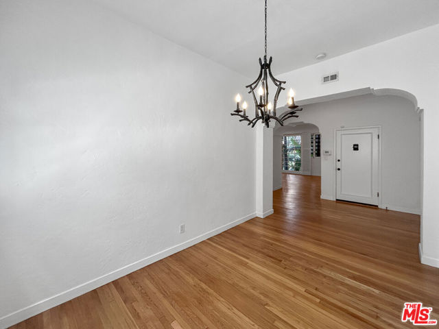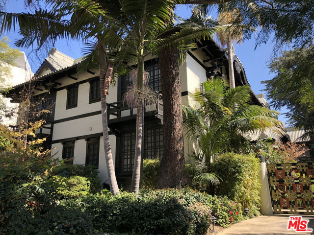 Extra-large one-bedroom residence with bonus den, offering the rare opportunity to live in vintage architectural splendor at the historic Lotus Apartments, designed in 1928 by architect William Hauptman. This distinctive Far East-inspired building is a true West Hollywood treasure, showcasing original design elements including decorative banding, corbels, metal cresting, peaked and undulating gables, wood window grilles, large arched picture windows, hand-finished plaster, antique lanterns, and intricate Japanese relief insets. Nestled behind lush greenery, the property transports you away from the city's bustle while sitting just moments from the most vibrant stretch of the Sunset Strip. Unit F2 features soaring ceilings, brand-new floors, oversized garden-facing windows that flood the space with natural light, walk-in closets, modern fixtures, stainless steel appliances, and an in-unit washer/dryer, all while preserving the timeless charm of the building's original character. Secured parking included. The bonus room is ideal for a home office, gym, or media space. A rare opportunity to experience historic elegance with contemporary comfort in one of Los Angeles's most iconic architectural gems.