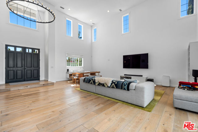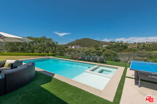 Absolutely stunning, fully remodeled contemporary-modern farmhouse situated at the end of a private cul-de-sac in the exclusive gated community of The Claridge Estates. This beautifully re-imagined 5-bedroom, 4.5-bath home features soaring ceilings, wide-plank European wood floors, and an elegant chef's kitchen with a large center island, custom cabinetry, and top-of-the-line Thermador appliances. The kitchen opens seamlessly to a dramatic great room with 20-foot ceilings and oversized La Cantina pocket doors that create true indoor-outdoor living. Enjoy breathtaking unobstructed panoramic views from the private backyard, complete with a pool, barbecue center, gazebo, gas fire pit, manicured lawns, and a putting green. Additional highlights include a formal dining room with fireplace and a downstairs en-suite bedroom. Community amenities include a full-sized tennis and pickleball court and a half basketball court. A rare offering in one of Calabasas' most desirable gated enclaves. Submit on pets.