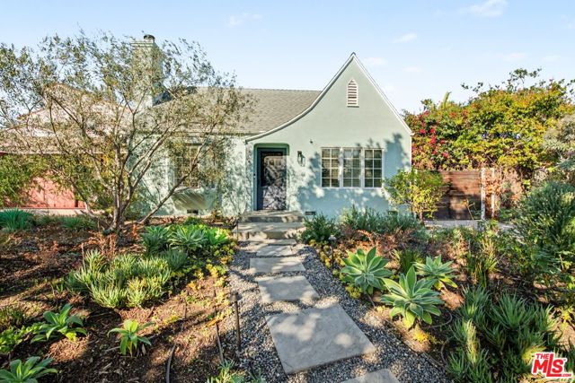 Classic 3 bed/3 bath 2-story French Country Style home with incredible updates and character on desired Westwood tree-lined street. Beautifully landscaped front yard with lemon tree and slate-tiled walkway. Filled with natural light, living room with charming front bay window, tall coved ceiling and decorative fireplace opens to spacious dining room. 3 bedrooms including 2 bed/2 bath downstairs, with updated bathrooms and primary suite upstairs with beautiful treetop views through large windows, newly remodeled contemporary full bath with dual basins, soaking tub and shower, and a spacious custom built walk-in closet. Remodeled kitchen with newer quartz countertops, butcher-block breakfast bar, stainless steel appliances with gas range/oven including griddle and large glass front cabinets. Sun-filled entertainer's family room with ceramic tiled flooring, built-ins, and bar with cabinets, all opening with sliding door to backyard patio with veranda, built-in heat lamps and patio table, and privately landscaped yard with stone gravel, mature garden and fruit trees, detached garage with auto door and gated driveway. Additional features include central ac/heat, hardwood flooring, dual pane windows throughout, plantation shutters, newly painted interior, Ideal proximity to Rancho Park Golf Course and Rec Center/Park, Pico Blvd. retails and restaurants, Westfield Century City Mall, Beverly Hills and UCLA. Westwood Charter School. Available immediately!