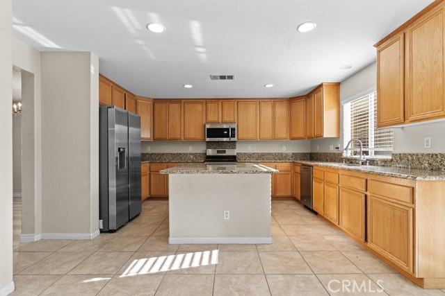 Beautiful 5-Bedroom Home in Desirable Canyon Heights Community. Welcome to this beautifully maintained two-story home, perfectly situated on a quiet cul-de-sac in the highly sought-after Canyon Heights neighborhood of Menifee. Featuring 5 bedrooms—including one conveniently located on the main level 3 full bathrooms, and an upstairs loft, this spacious home offers 2,795 sq ft of thoughtfully designed living space on a generous 7,405 sq ft lot—ideal for both relaxing and entertaining. Step inside to discover new laminate flooring throughout, including in all bedrooms, offering a clean and modern aesthetic. The heart of the home is the open-concept kitchen, showcasing a large island with granite countertops, abundant cabinetry, and plenty of prep space for the home chef. Neutral paint tones and ample natural light enhance the home’s bright, airy, and inviting ambiance. Just off the entryway, you'll find a versatile flex space—perfect for a home office, guest room, or whatever your lifestyle demands. The landscaped front yard boosts curb appeal, while the three-car garage provides ample room for parking, storage, or a workshop. Located in a family-friendly neighborhood within walking distance to Quail Valley Elementary School, this move-in ready home is ideal for growing families. Canyon Heights is a well-established community of just 394 homes, known for its low property taxes and peaceful setting. Don’t miss your opportunity to own this exceptional home in one of Menifee’s most desirable neighborhoods!