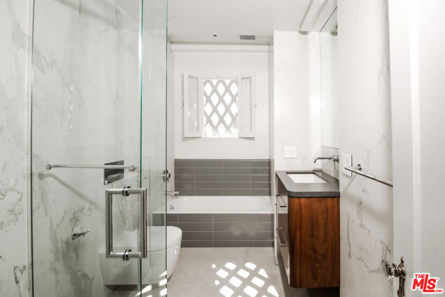 After nearly a century of standing proudly in the heart of West Hollywood, the breathtaking El Mirador residential building has opened its doors and is eagerly awaiting new tenants. Over a decade of delicate, thoughtful restoration, repair, and renovation that has gone into this true masterpiece: floorboards revarnished and replaced piece by piece into their original place, coats of paint and primer gently peeled from the hand-carved entry archways, custom imported rugs lining its great halls, and any salvageable bit of this building's rich character maintained and fought for, remaining proudly in tact; the devil is in the details.This 1,350 square foot unit nestled between Fountain and Sunset in a quiet pocket of West Hollywood, features two bedrooms and one full bathroom. This stunning home comes equipped with state-of-the-art appliances surrounded by sleek Cambria stone and a spacious eat in kitchen. Retractable screens hide within the windowpanes so as not to disturb the view, which spills sunlight in from the North, West and East facing windows throughout the space.