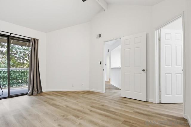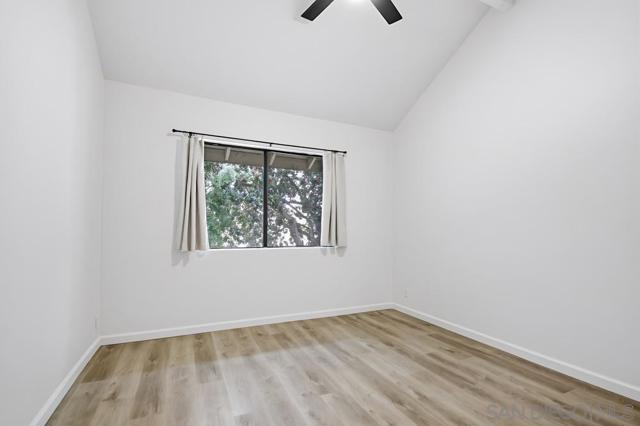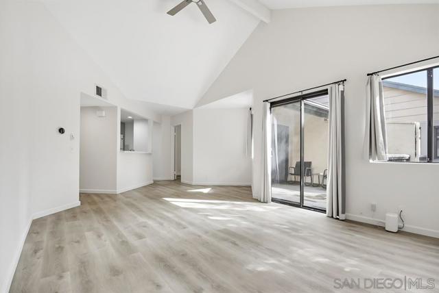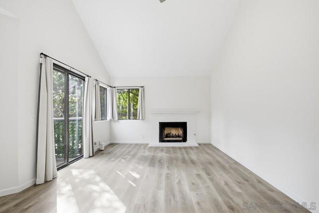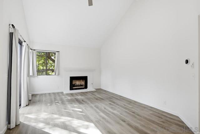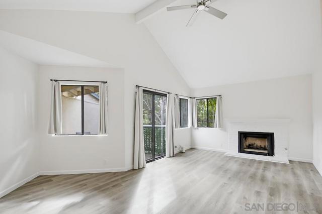 op-floor 2-bedroom, 2-bath condo featuring an open floor plan and vaulted ceilings in the private Ranchwood community. This bright and inviting unit includes in-unit laundry with a stackable washer and dryer, a cozy living room fireplace, and central AC. The spacious primary bedroom offers a private ensuite bath, walk-in closet, and sliding door access to the balcony. Enjoy community amenities including tennis/pickleball courts, pool and spa, open grassy park areas with BBQs, and a dedicated carport with additional storage.